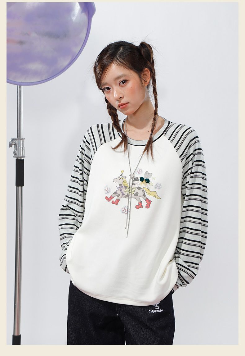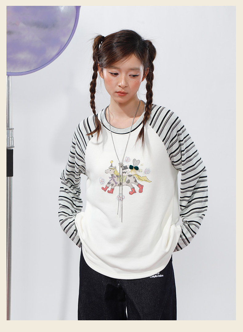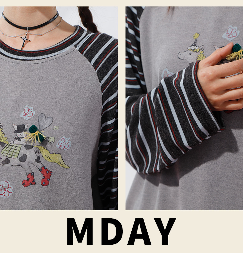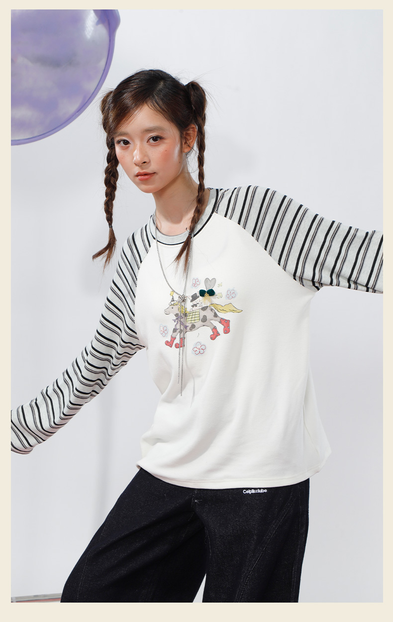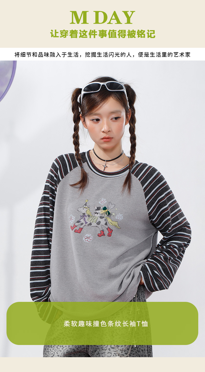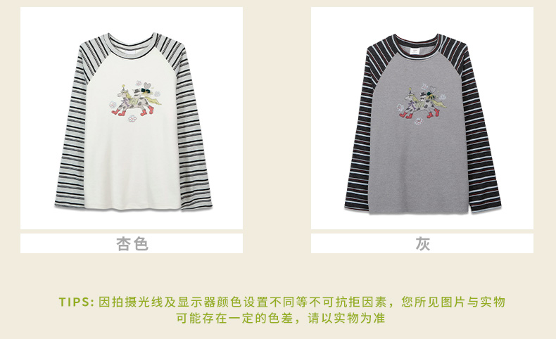 柔软趣味撞色条纹长袖T恤-纪念日百货门店同款168998134