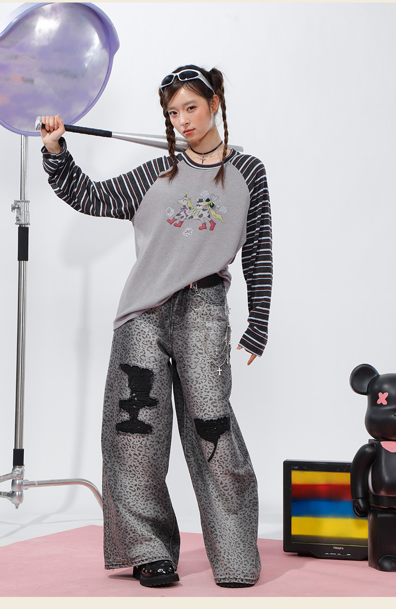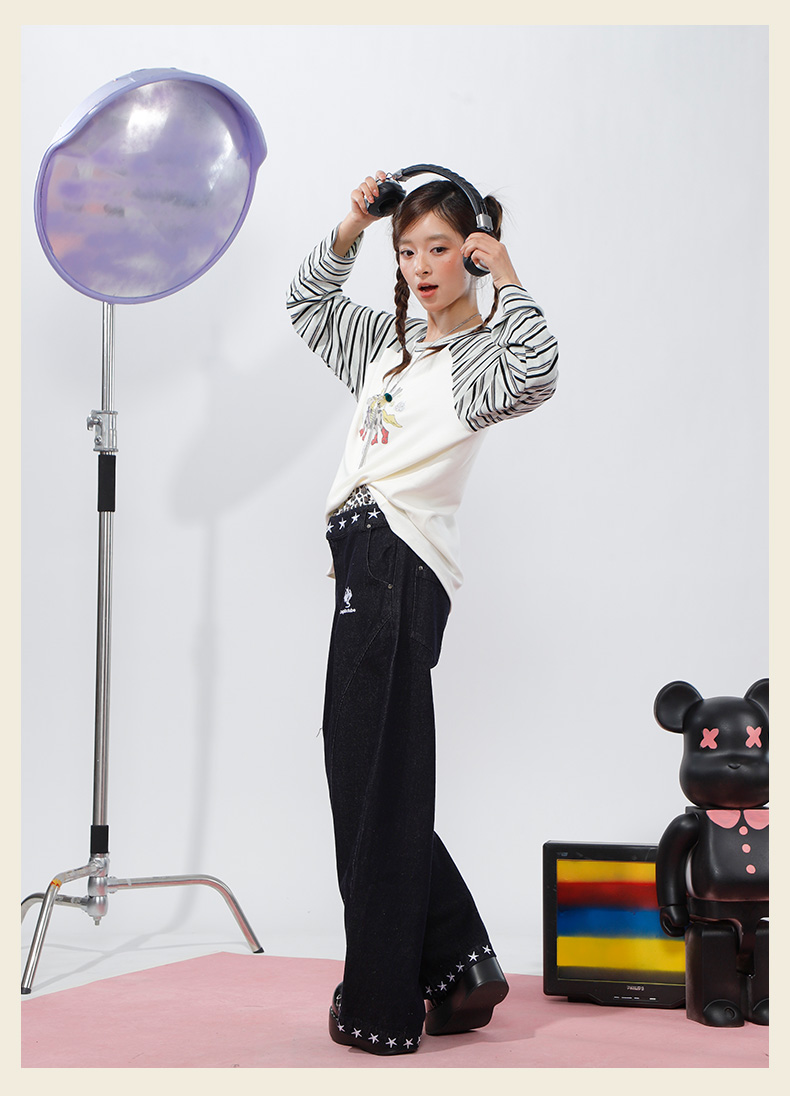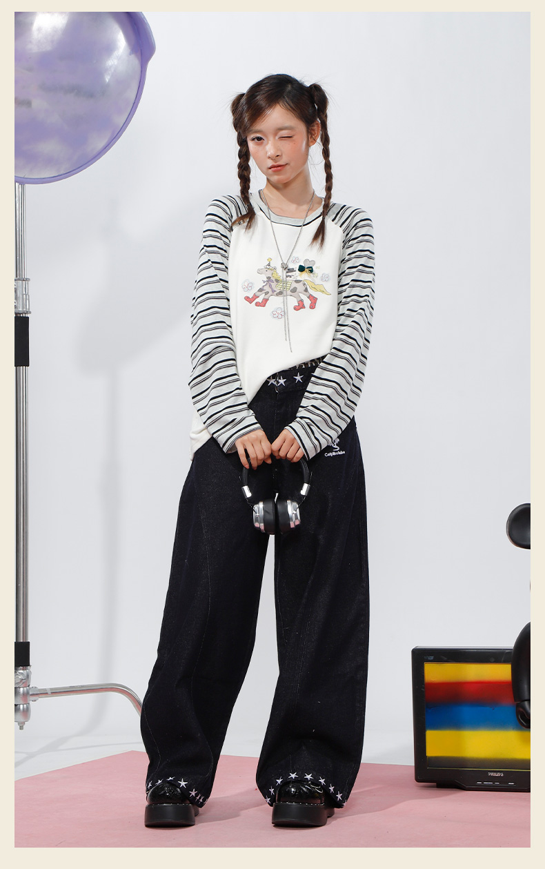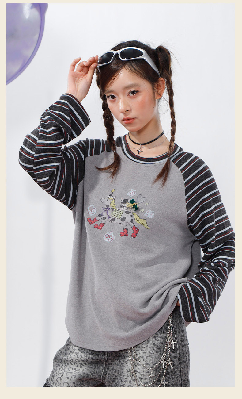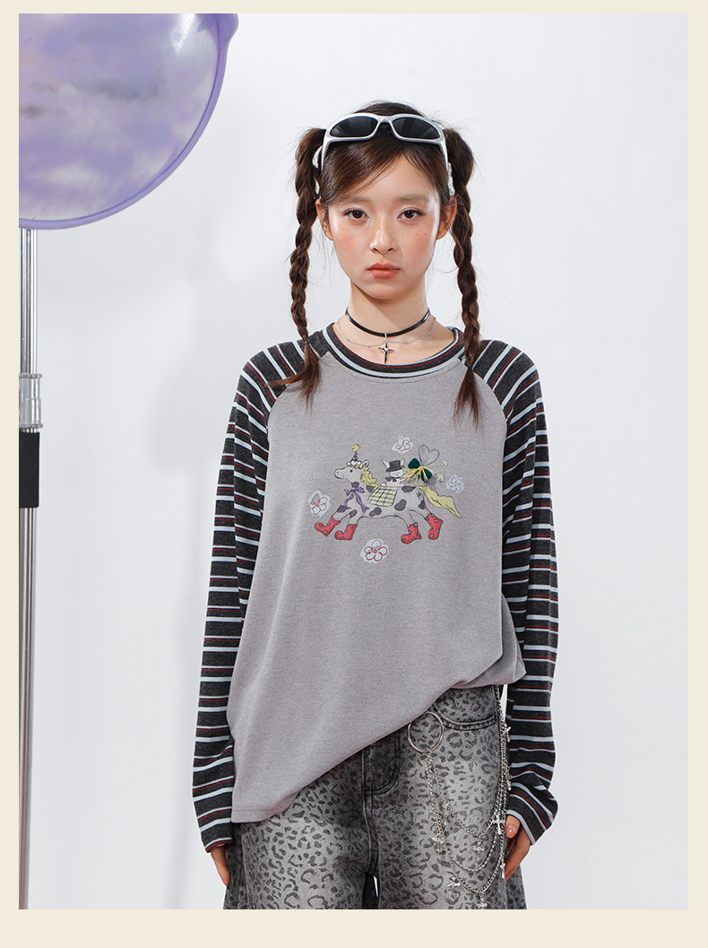 柔软趣味撞色条纹长袖T恤-纪念日百货门店同款168998134