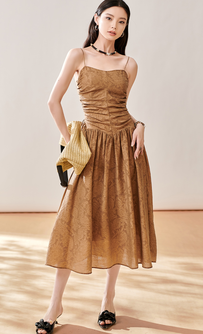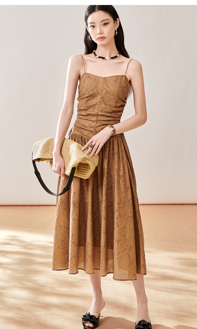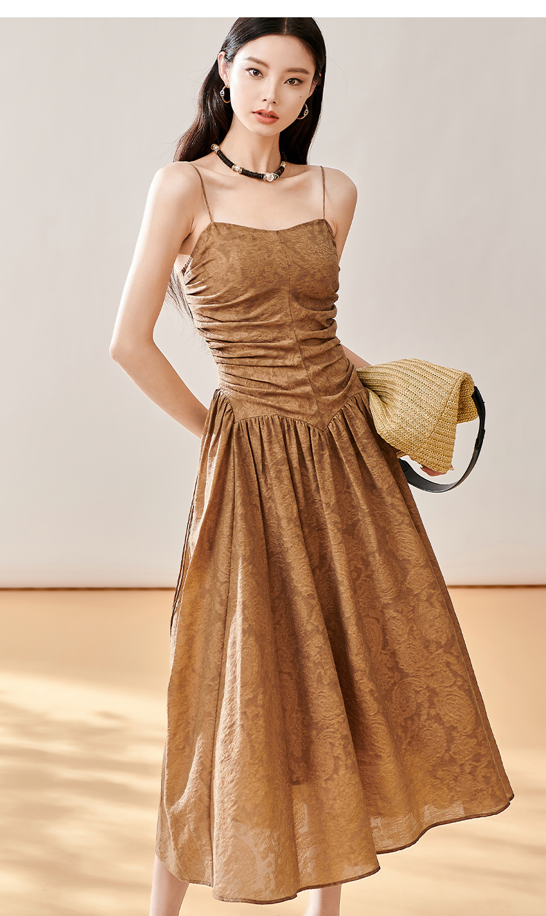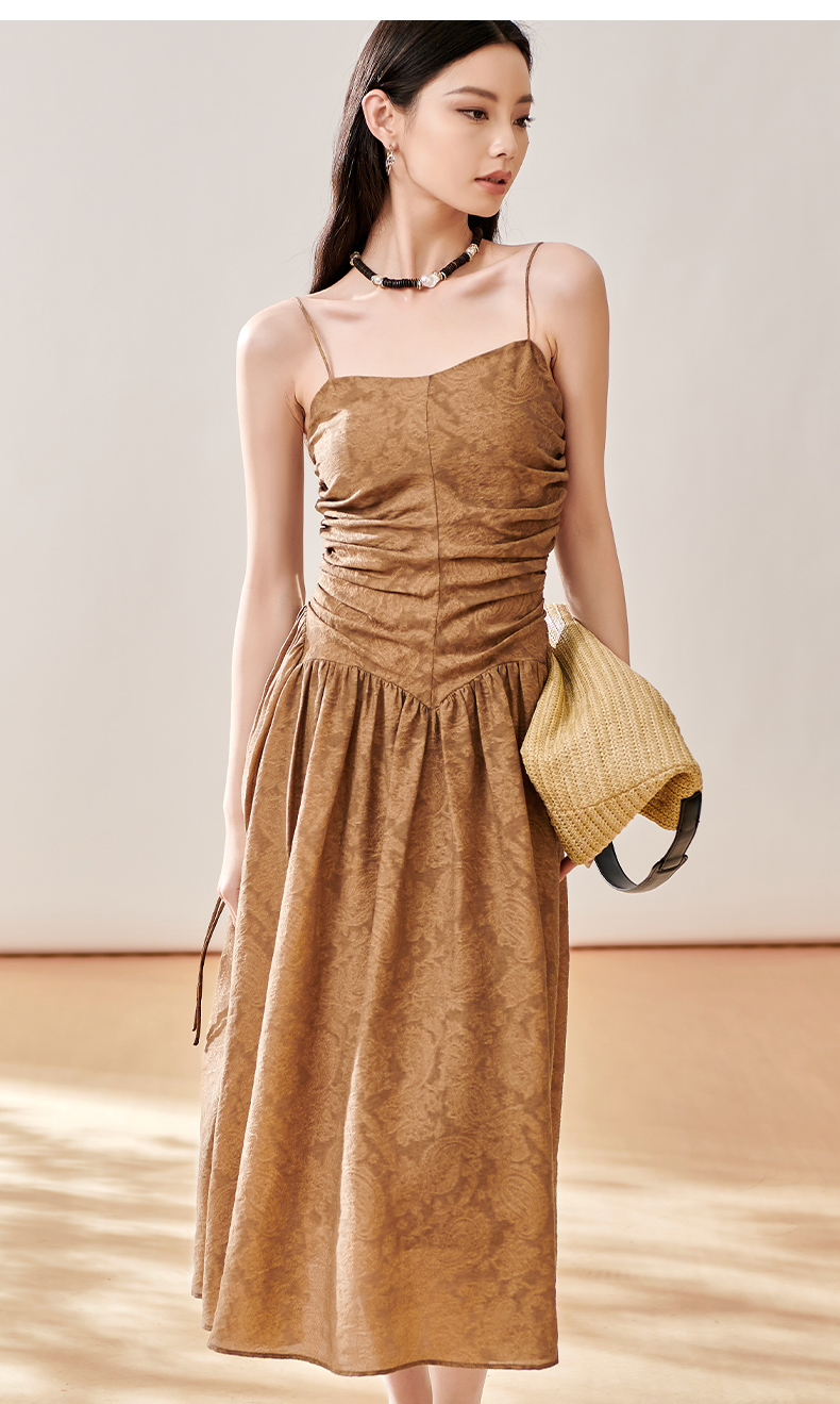 芳外新款轻奢提花吊带裙褶皱法式优雅连衣裙女8T23CL1056
