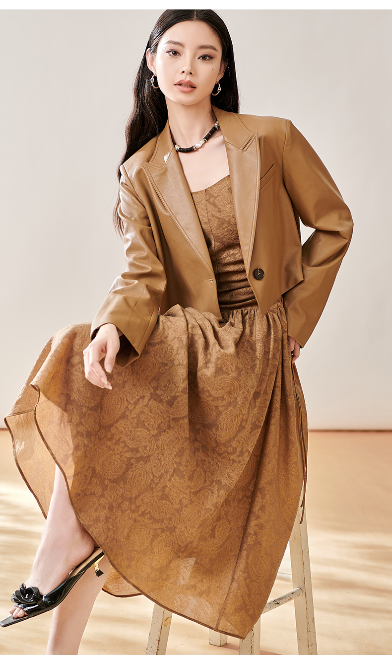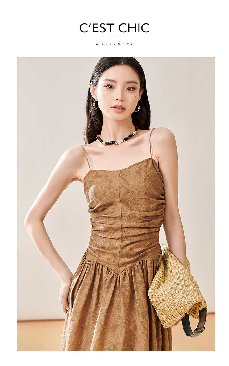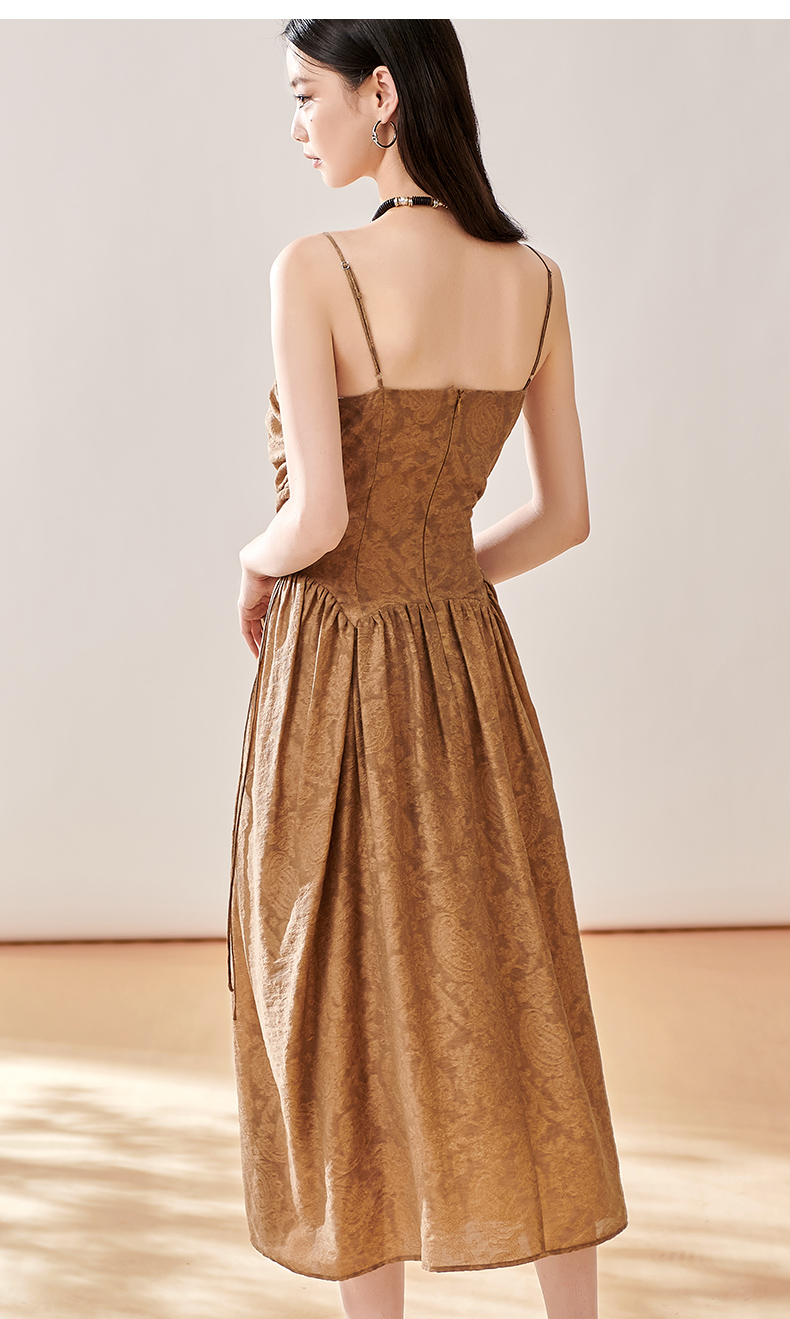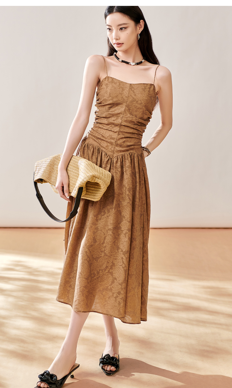 芳外新款轻奢提花吊带裙褶皱法式优雅连衣裙女8T23CL1056