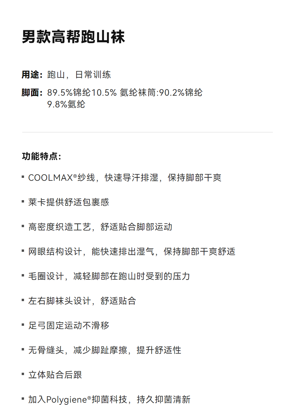 KAILAS凯乐石 男款高帮跑山袜 KH2602105