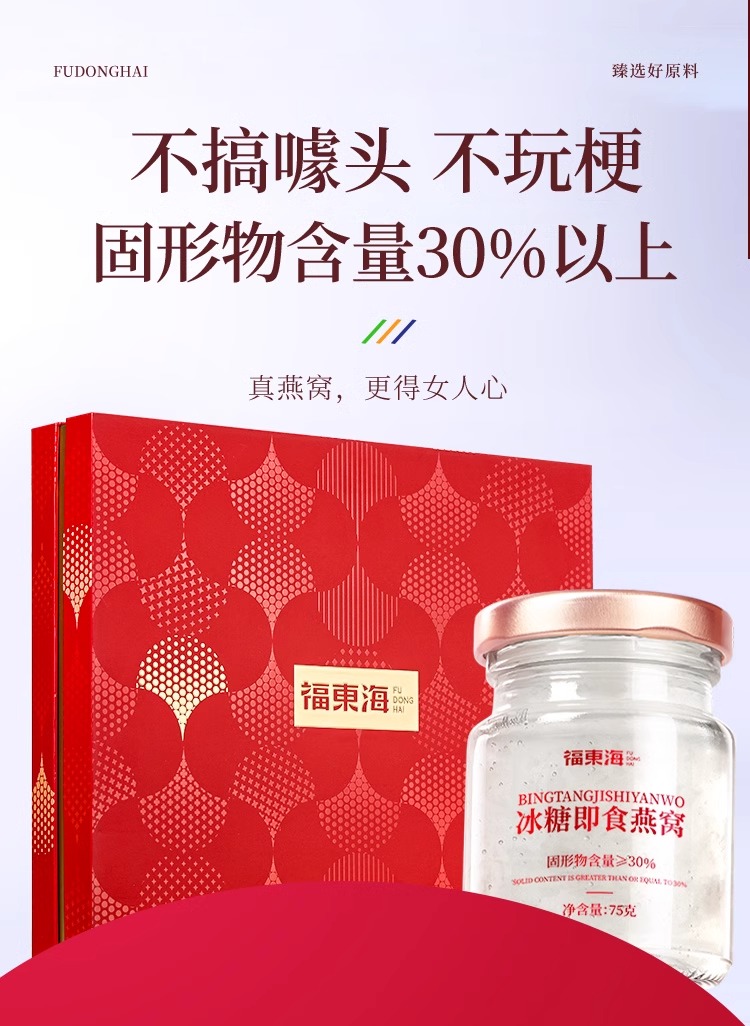 【官方直发 鲜炖燕窝礼盒】福东海冰糖即食燕窝750克(75克x10瓶)