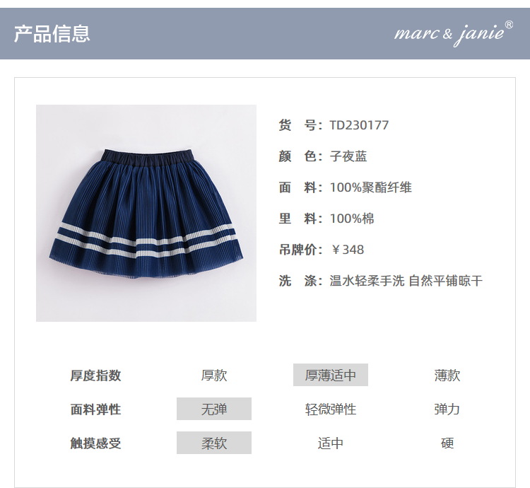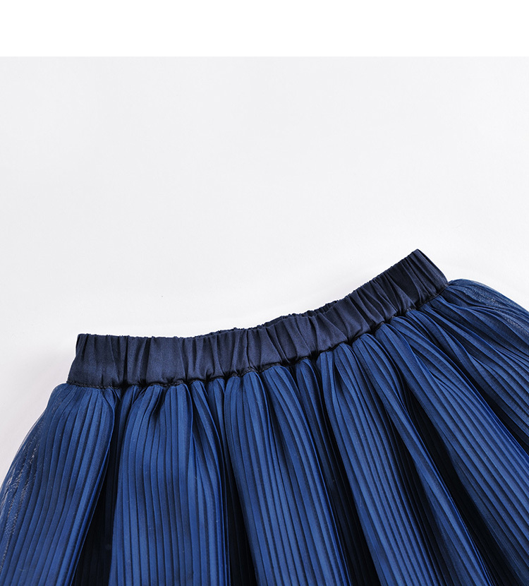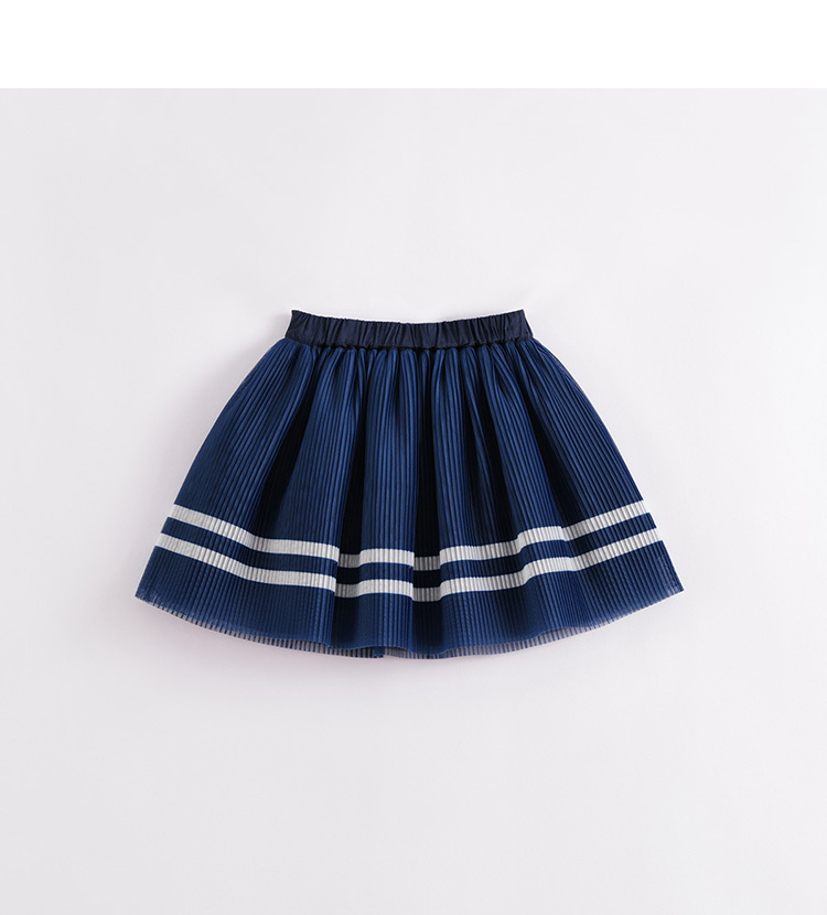马克珍妮春装新款 女童儿童学院风网纱百褶短裙230177