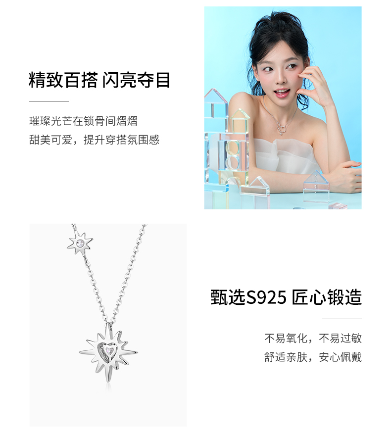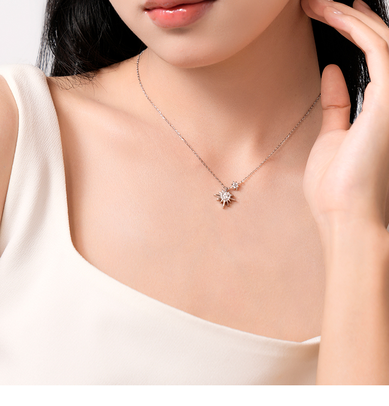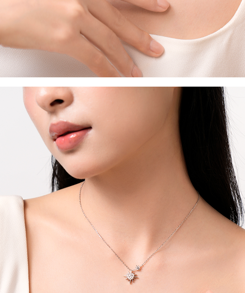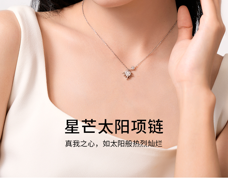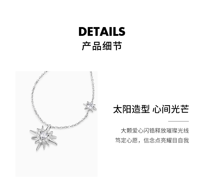 卡蒂罗KADER 星芒太阳项链 925银大颗爱心闪锆镶嵌创意独特向阳而生积极向上太阳花造型设计锁骨链