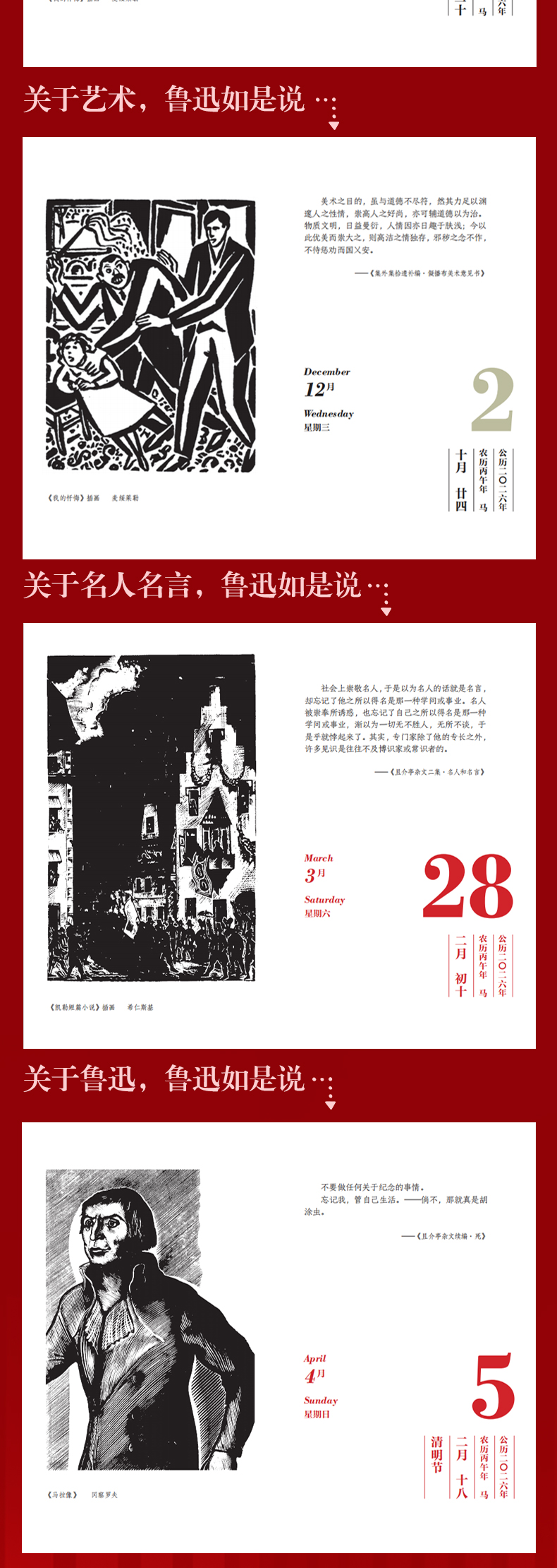 【2026日历】《人间清醒》鲁迅日历2026年