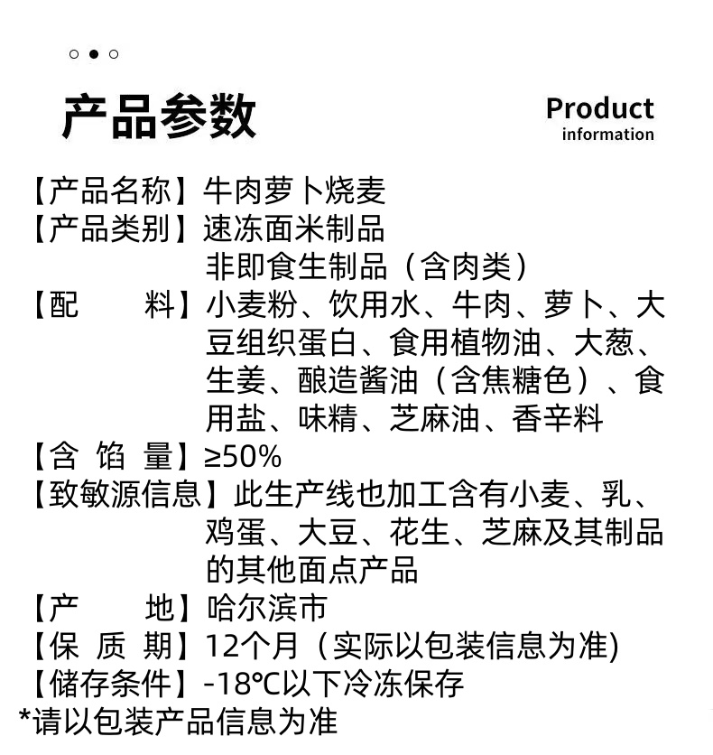 【清真】快速厨房 牛肉萝卜烧麦300g