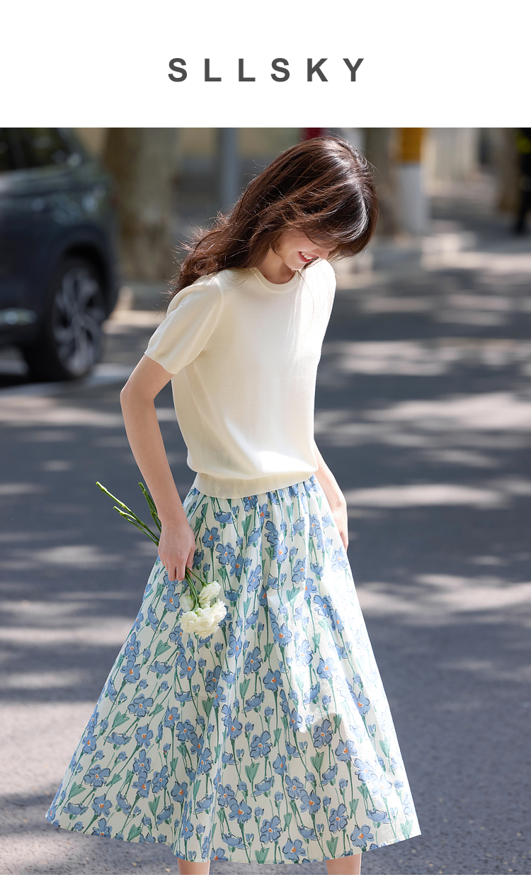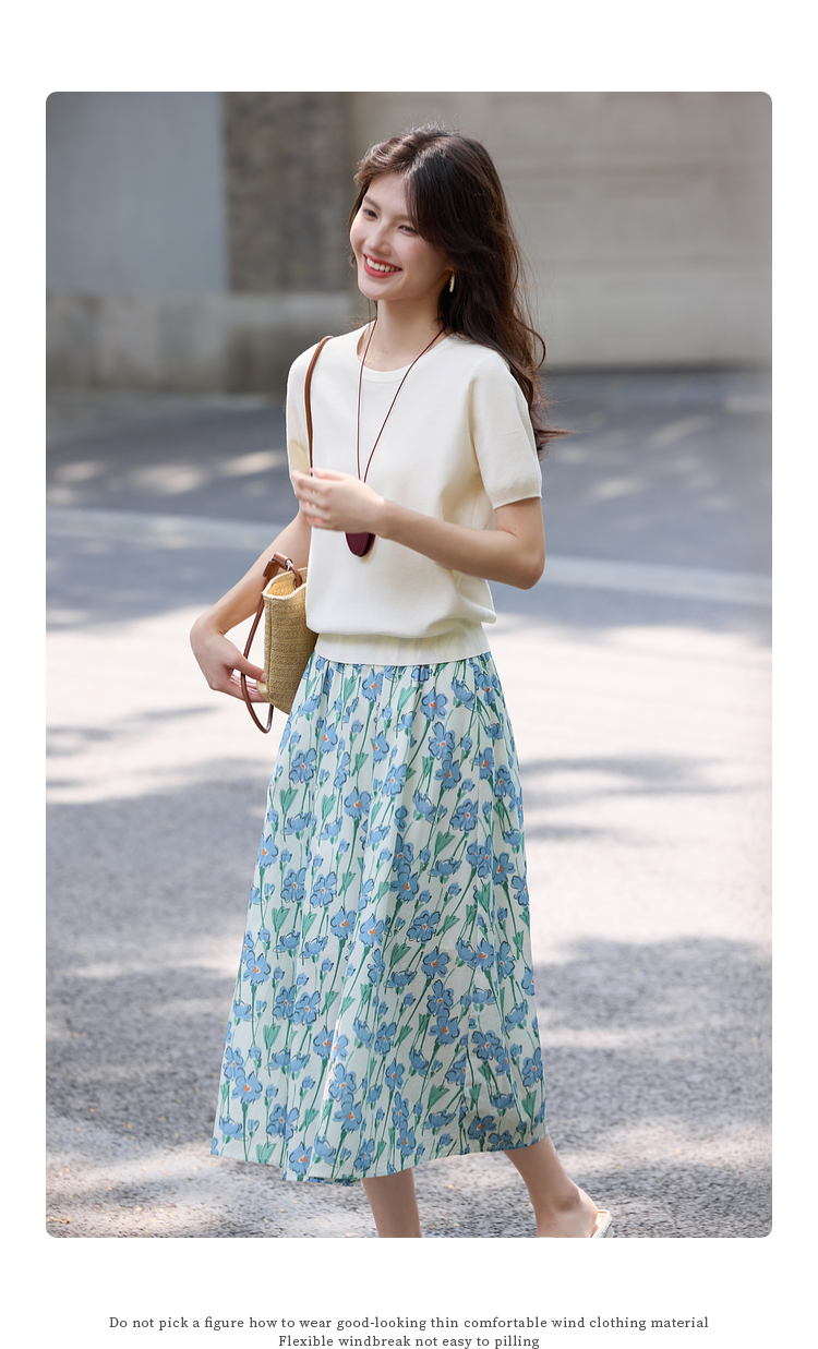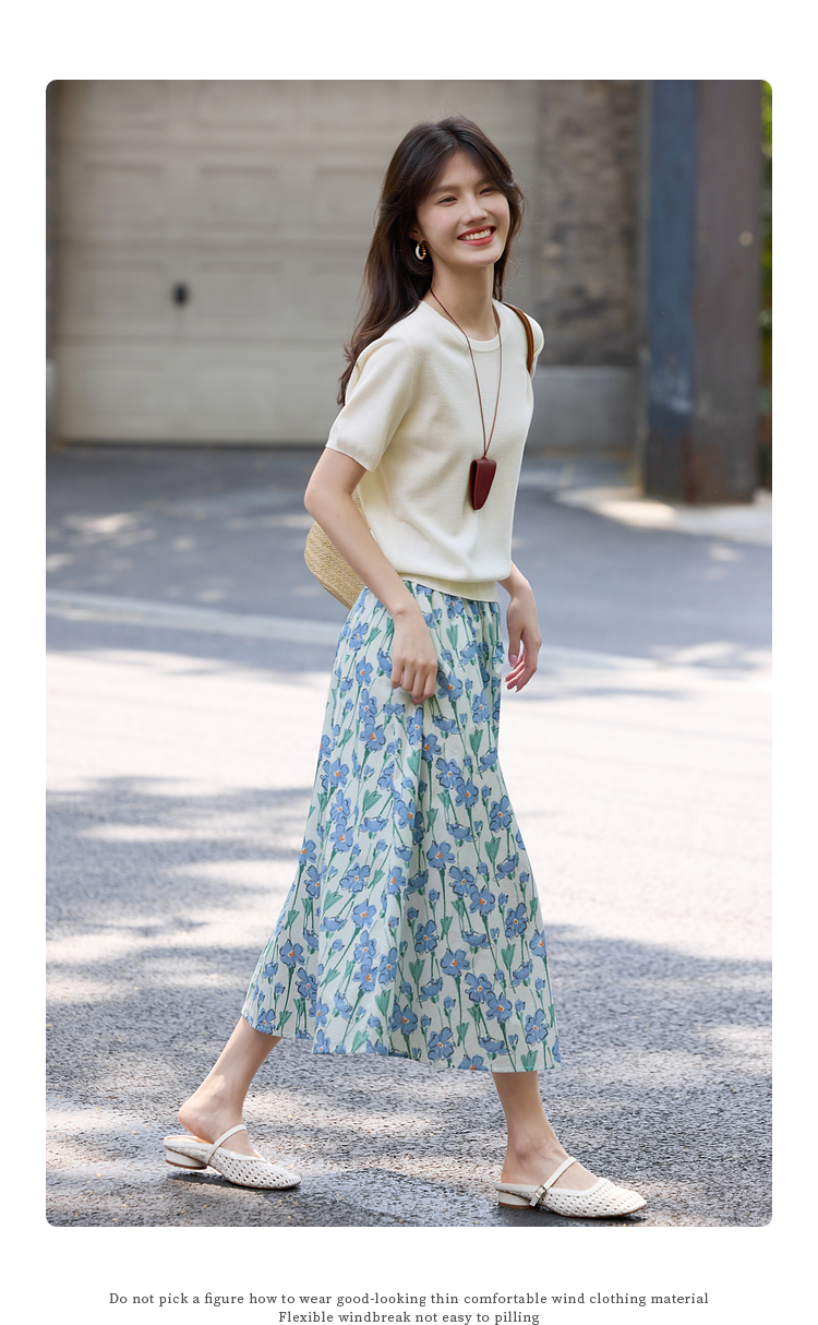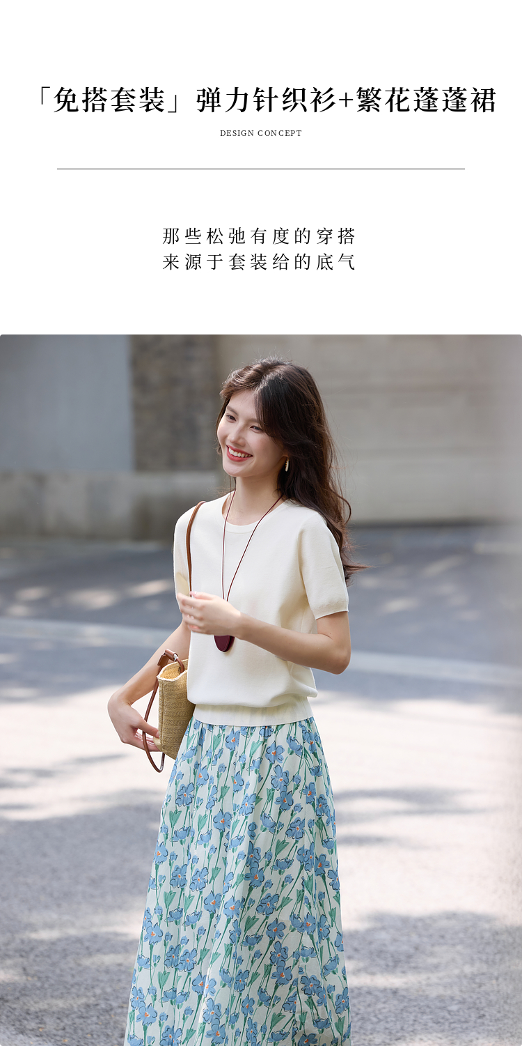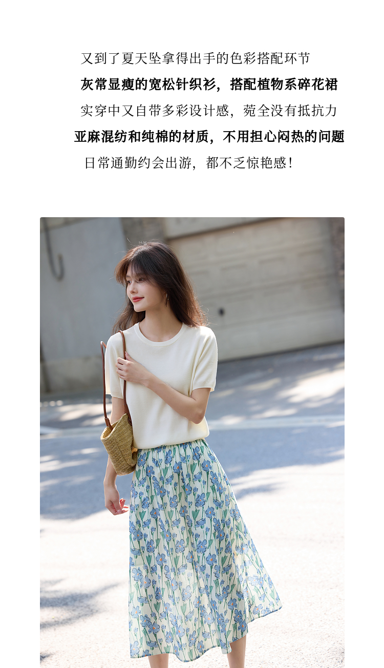 【专属特价】熙世界夏季女套装2025年新款亚麻薄纱针织衫植物印花半身裙两件套