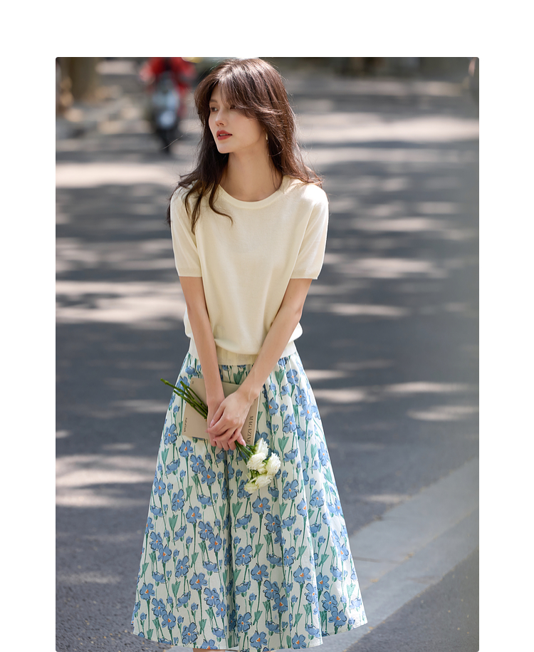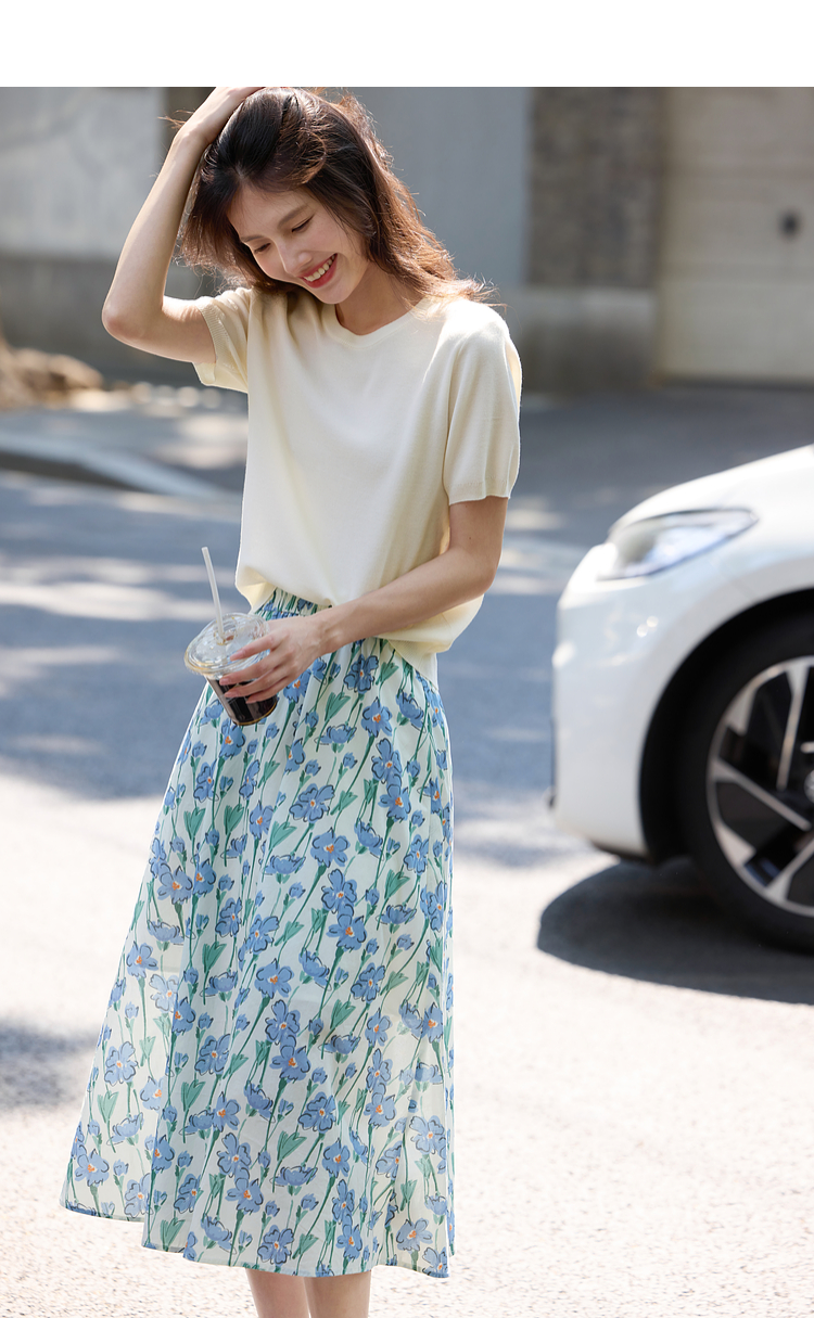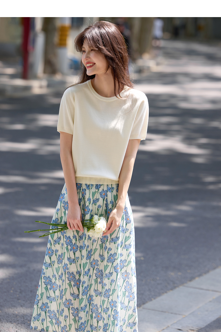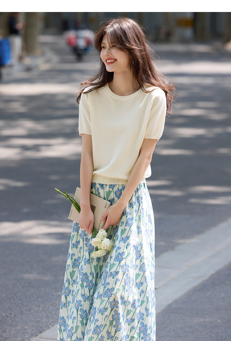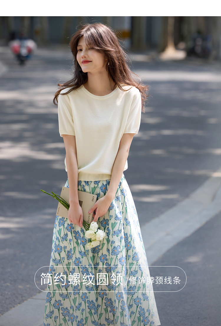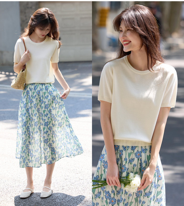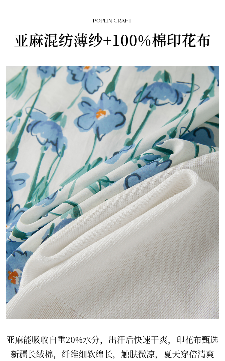 【专属特价】熙世界夏季女套装2025年新款亚麻薄纱针织衫植物印花半身裙两件套