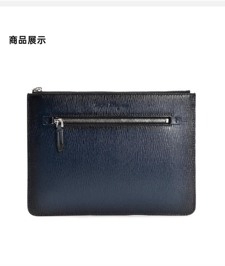 FERRAGAMO 菲拉格慕 男士锤纹小牛皮拉链手拿包 蓝色 24 0479 685533
