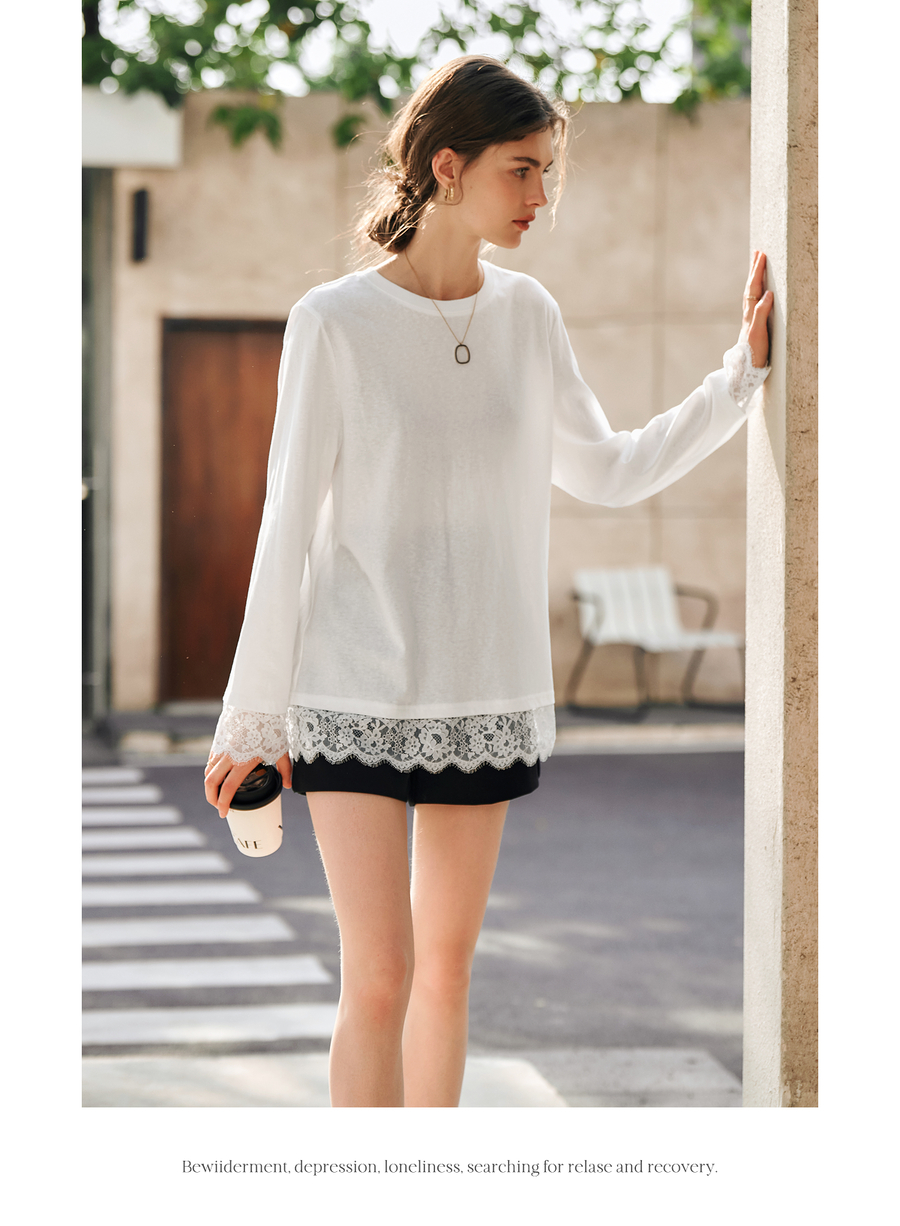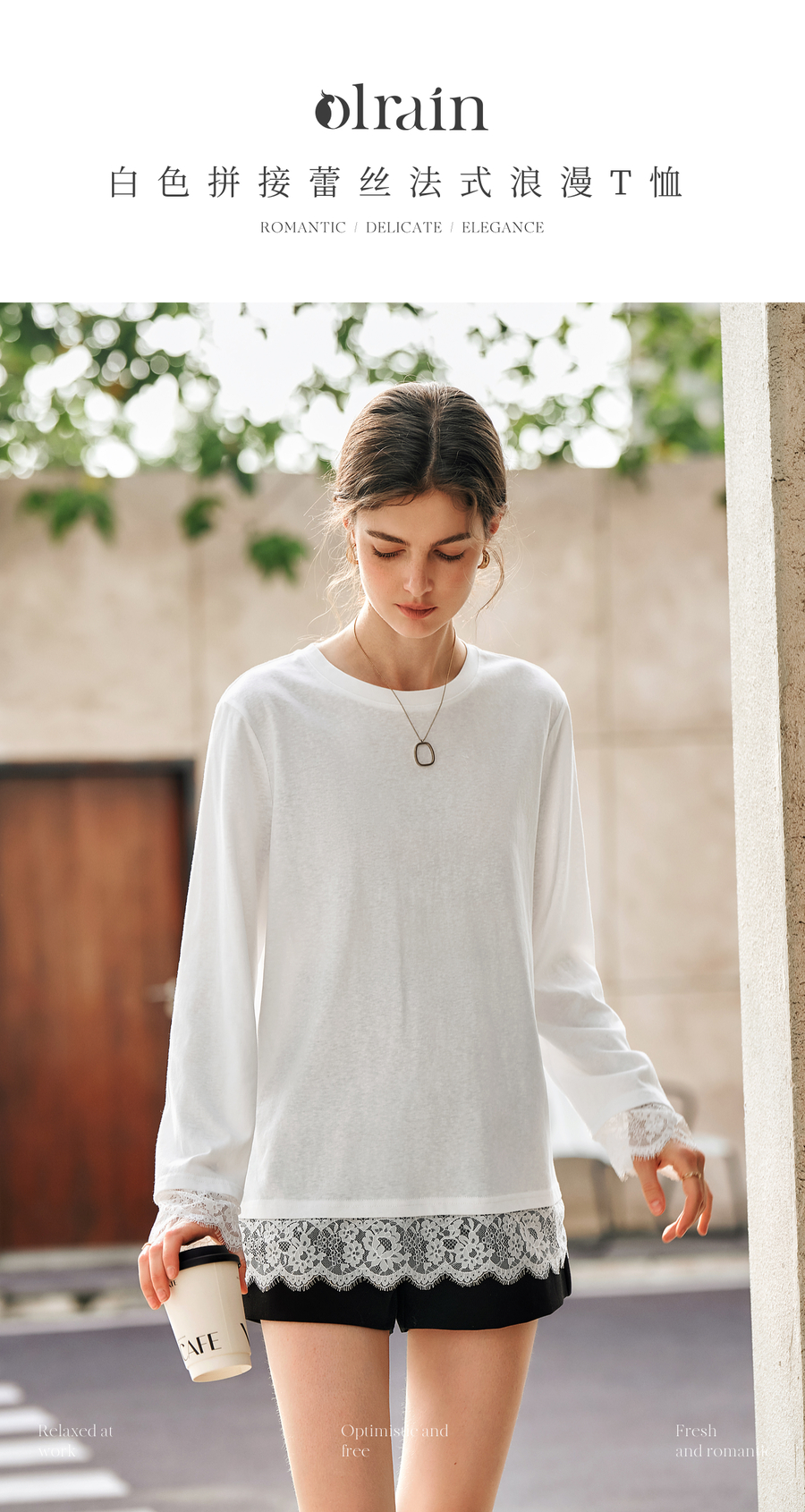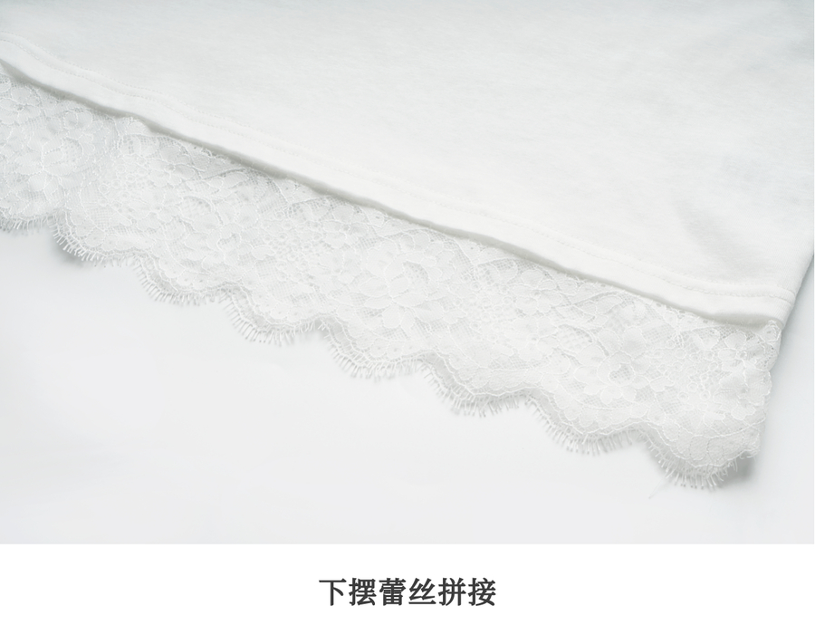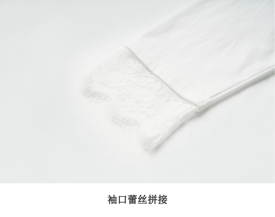 OLrain欧芮儿法式白色T恤女春季2025年新款设计感拼接蕾丝上衣
