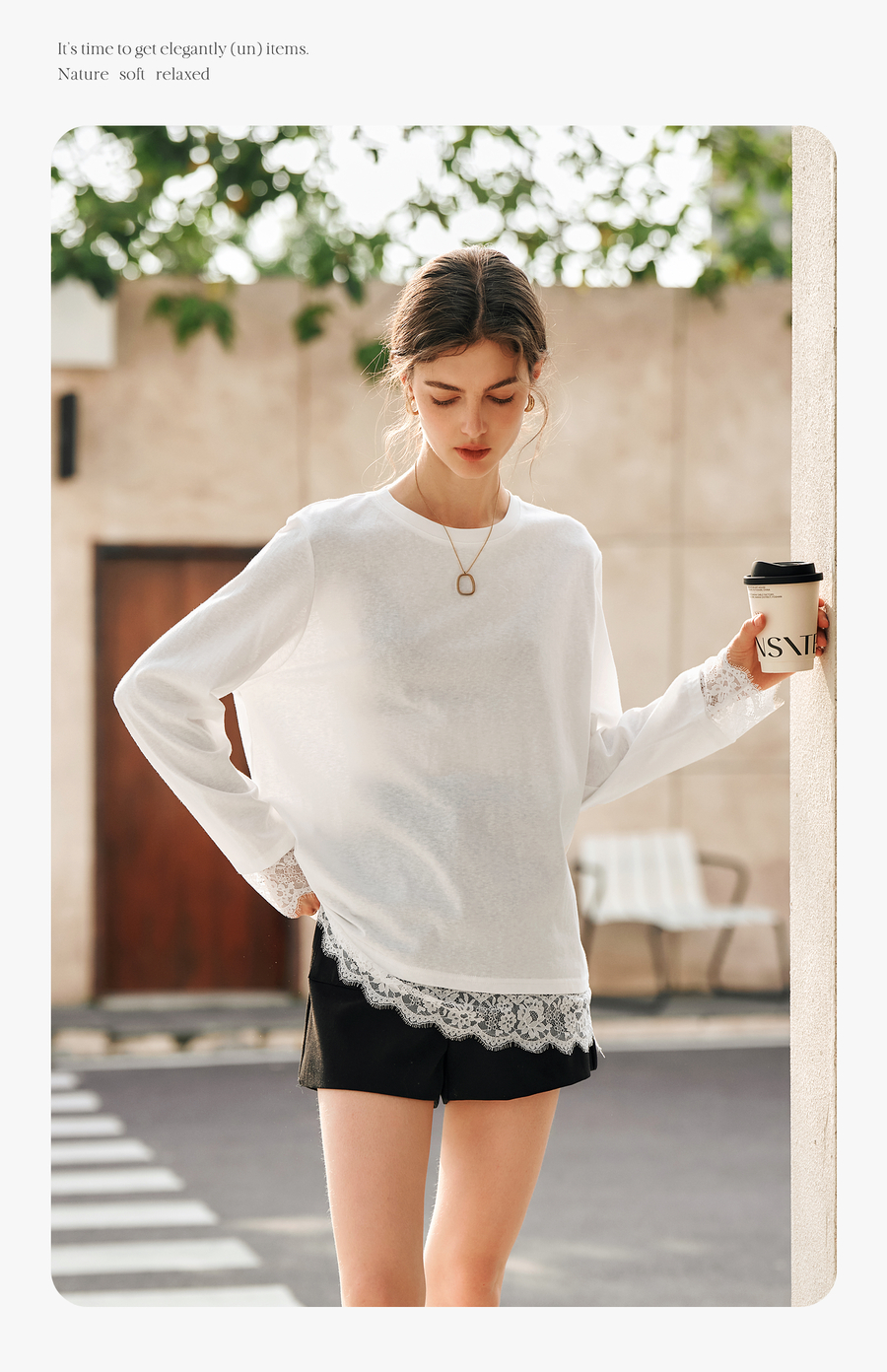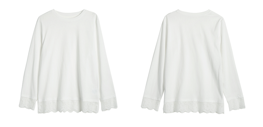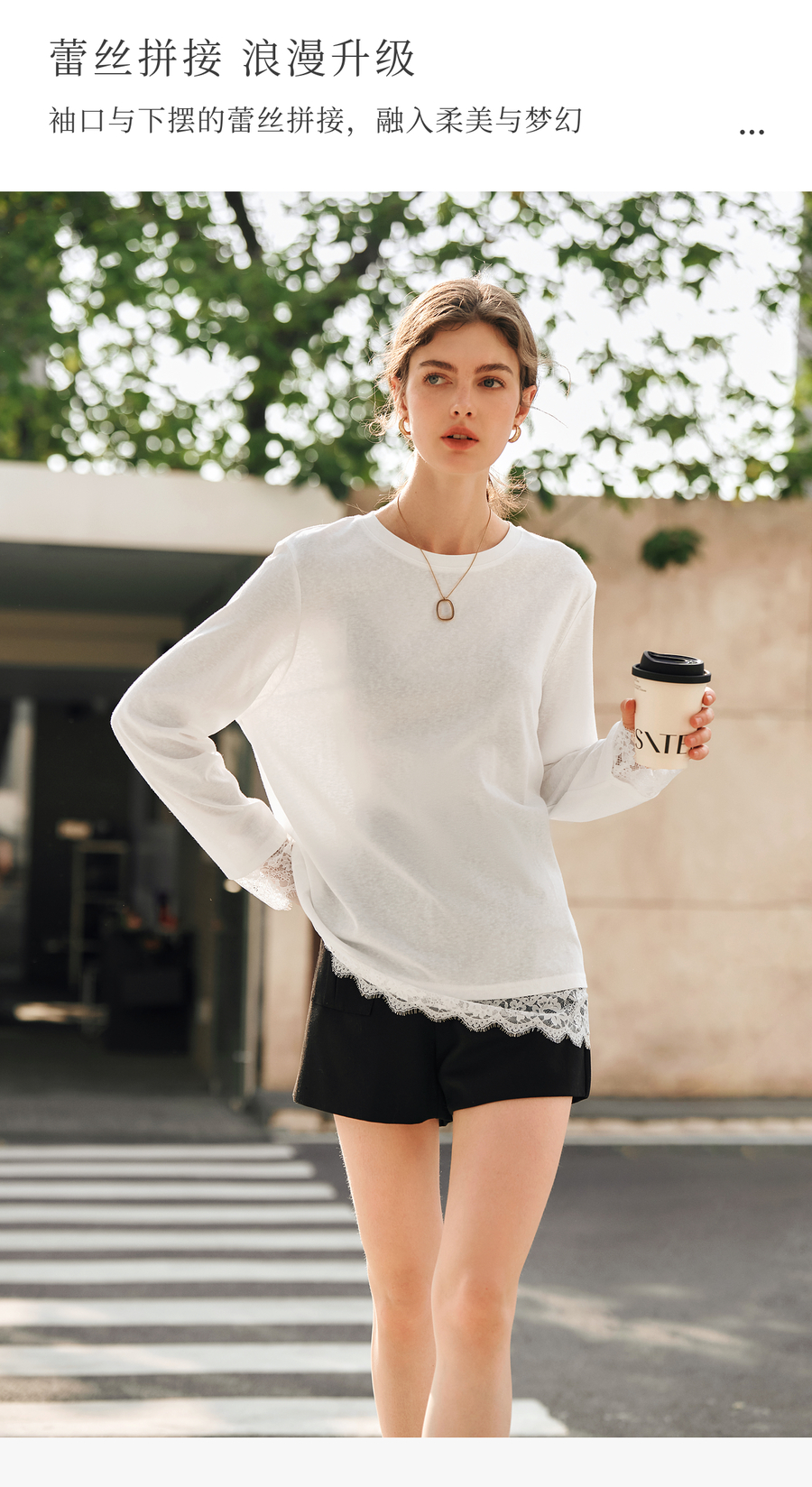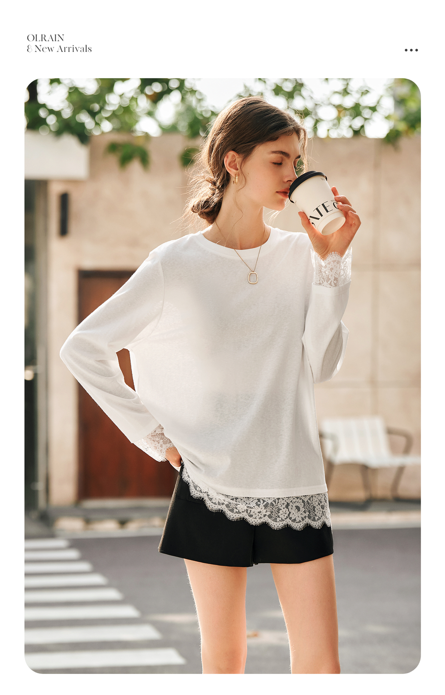OLrain欧芮儿法式白色T恤女春季2025年新款设计感拼接蕾丝上衣