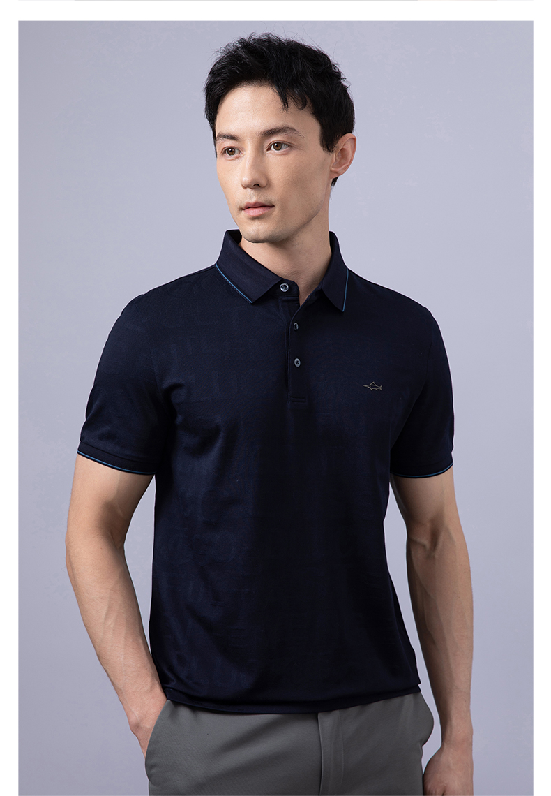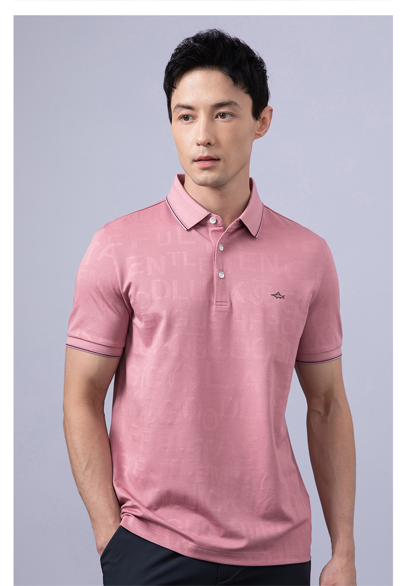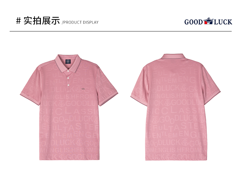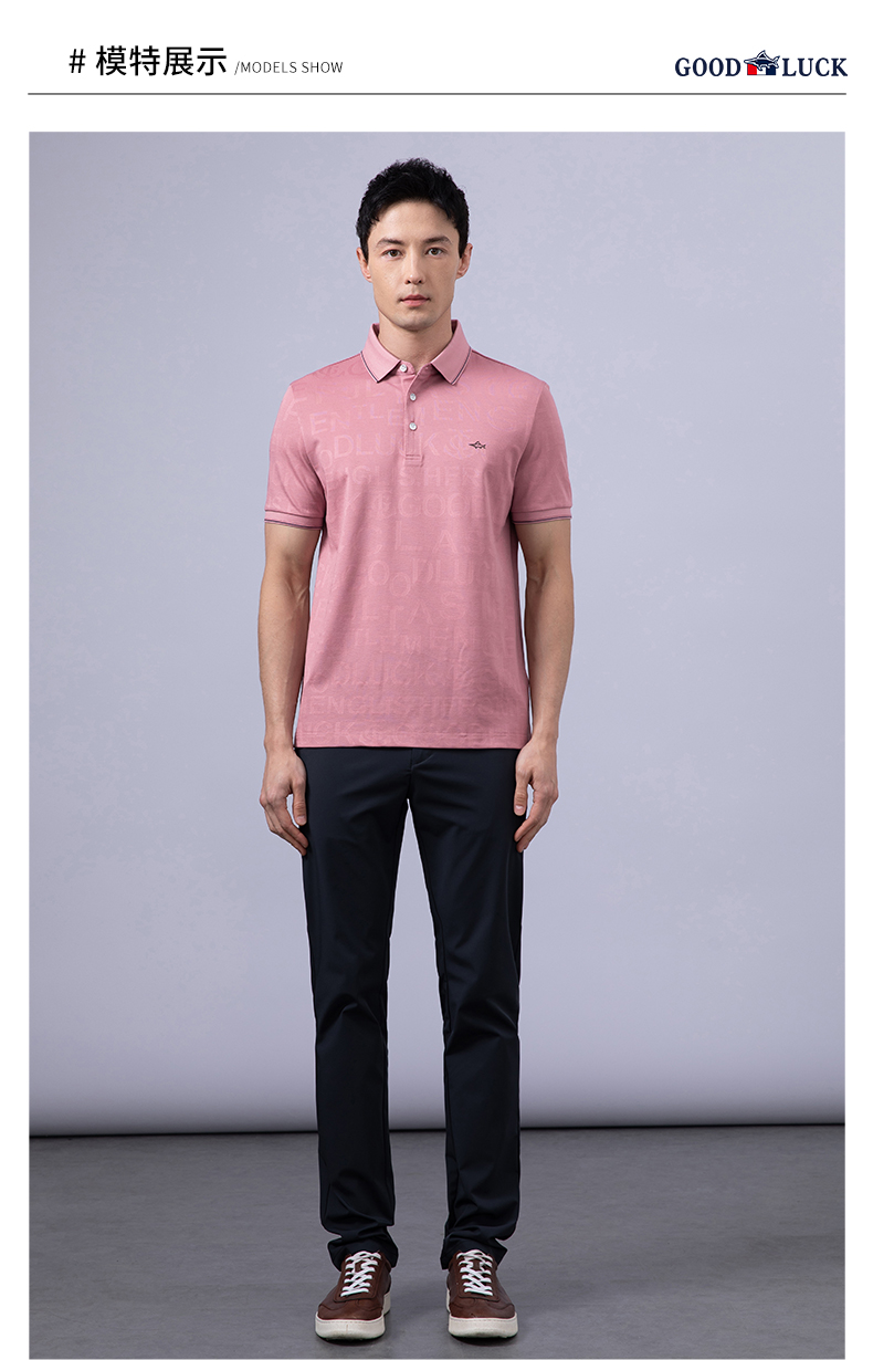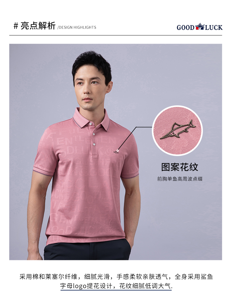 GOOD LUCK/德鲨弹力时尚亲肤柔软全身字母提花细腻精致短袖时尚休闲POLO衫LY23156
