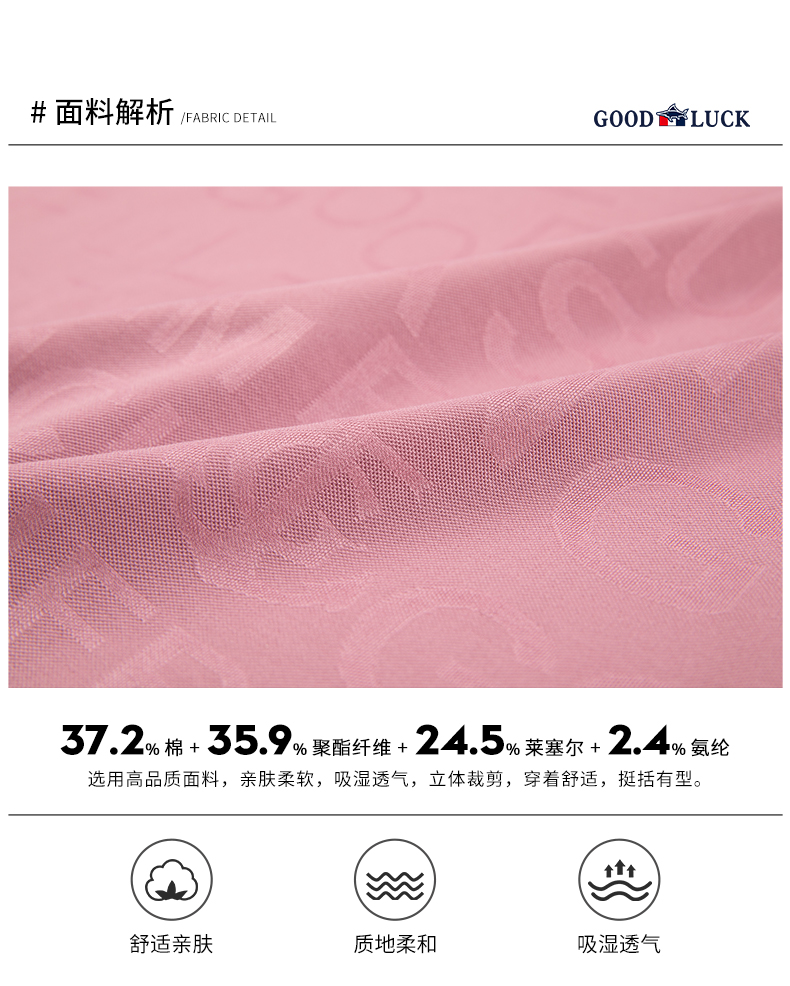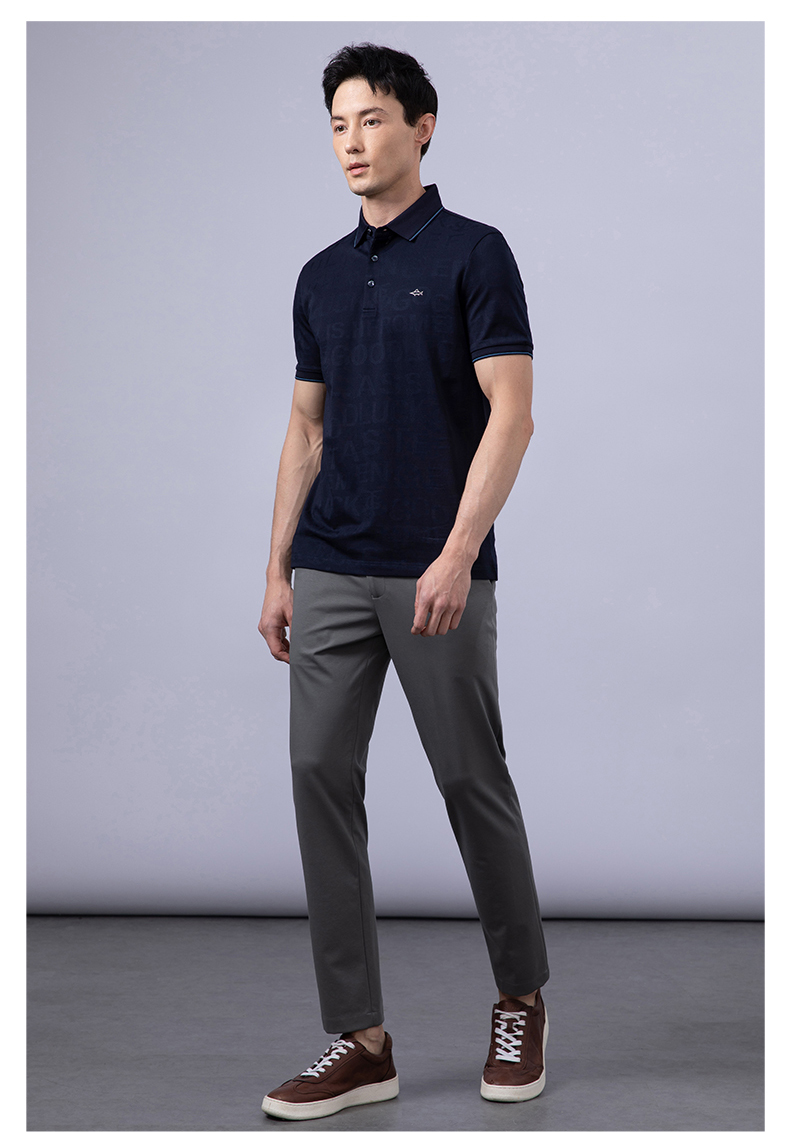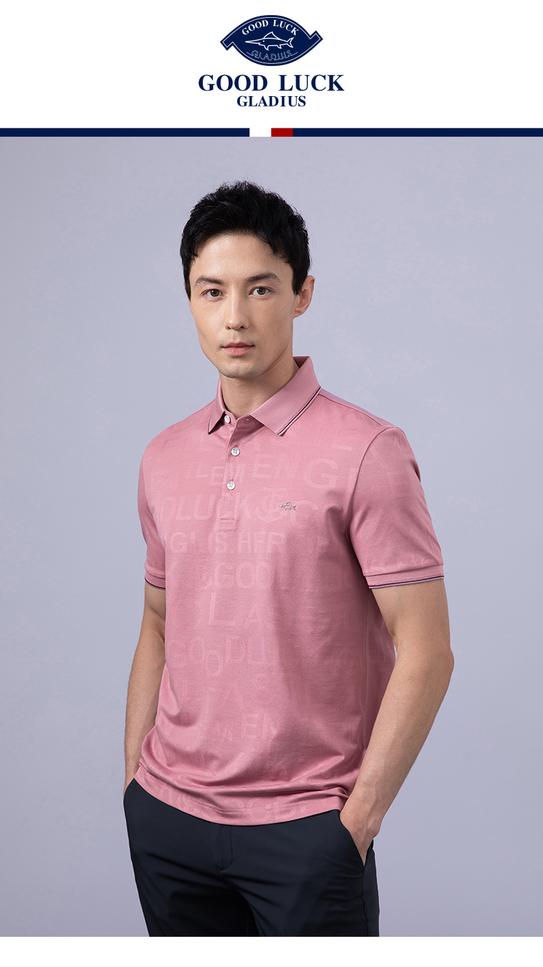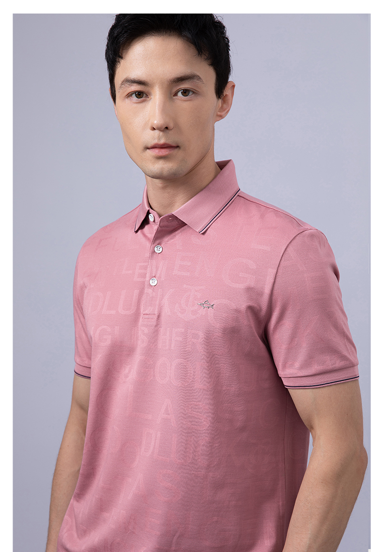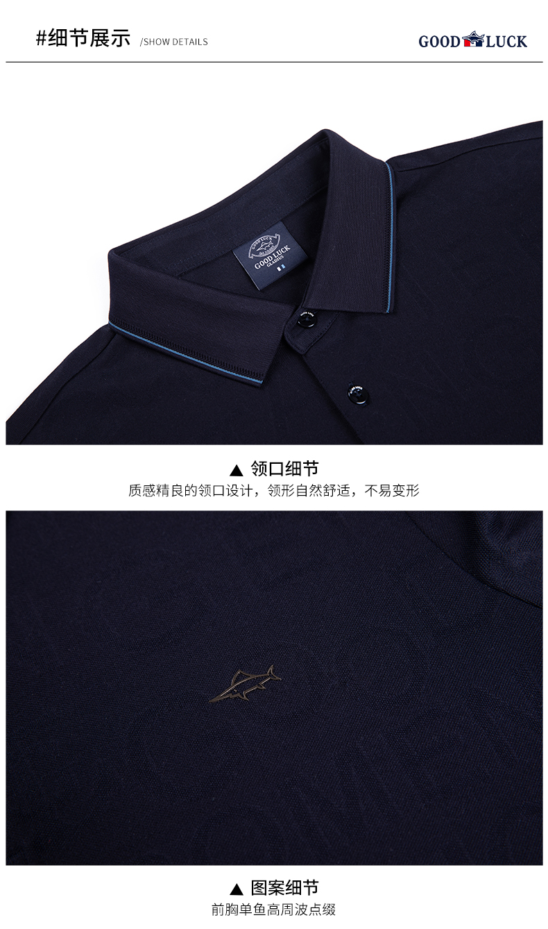 GOOD LUCK/德鲨弹力时尚亲肤柔软全身字母提花细腻精致短袖时尚休闲POLO衫LY23156
