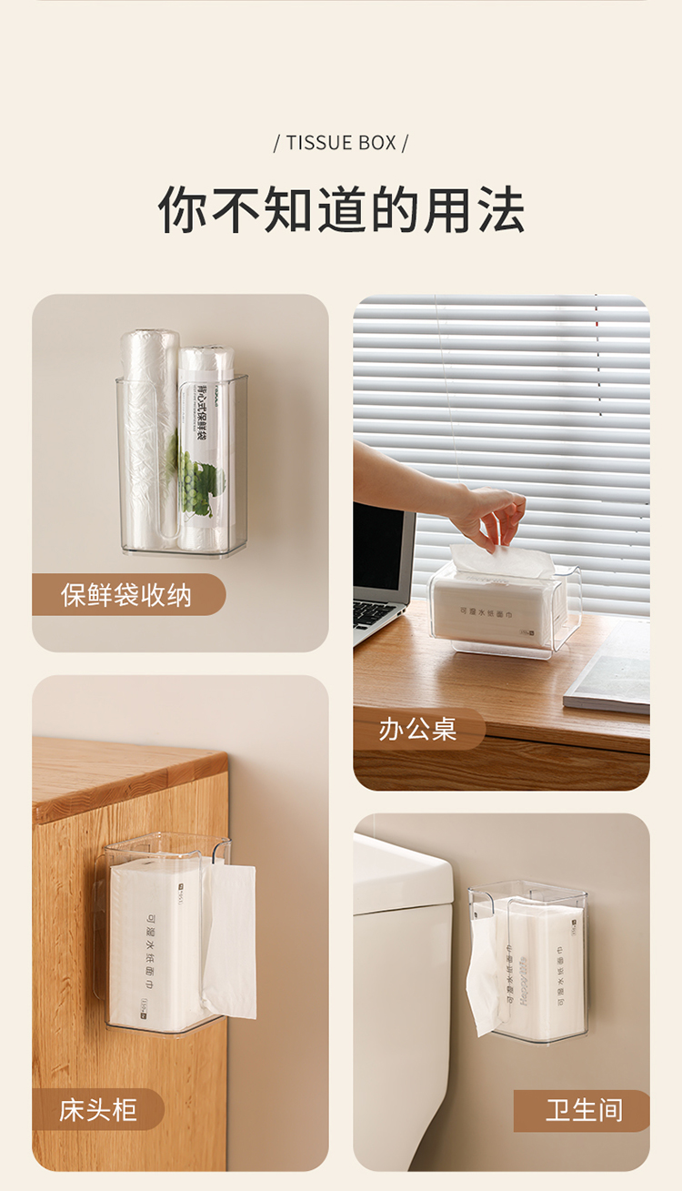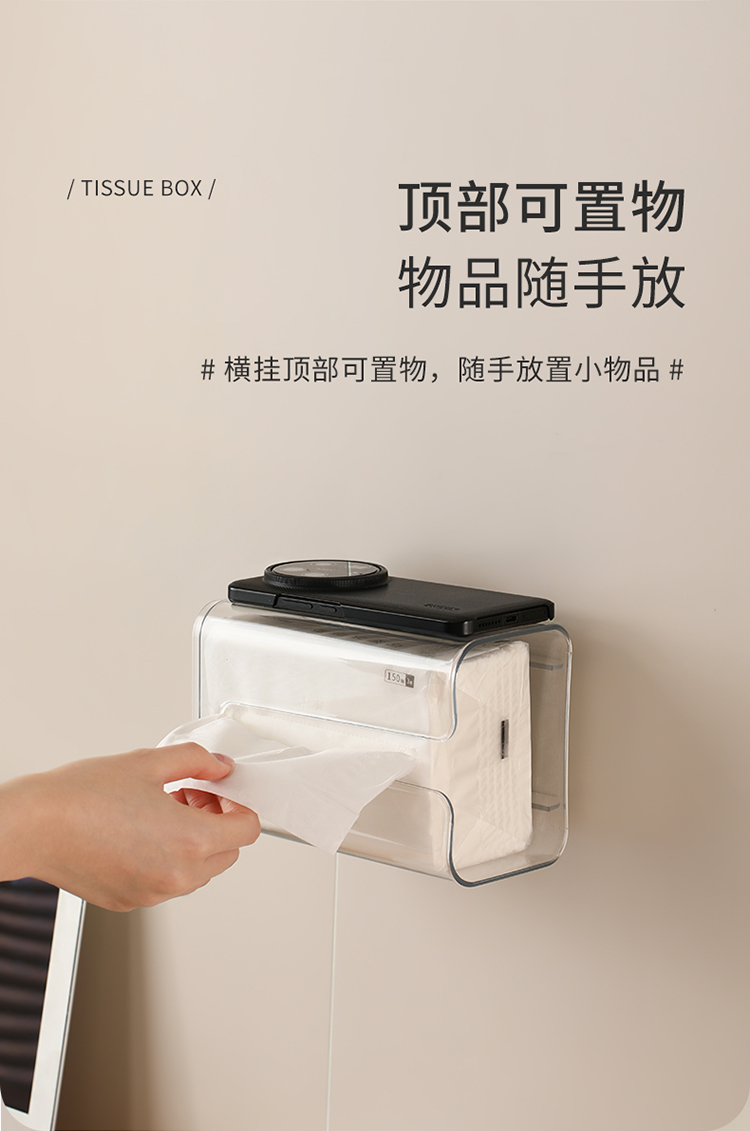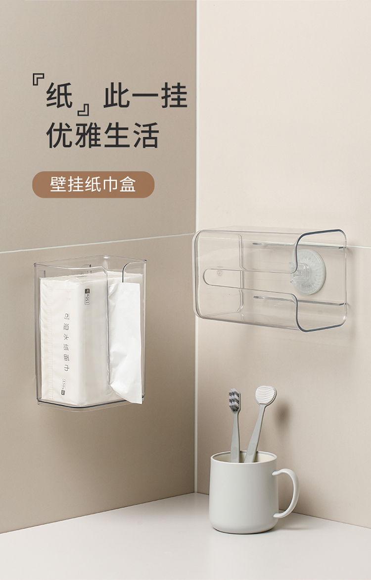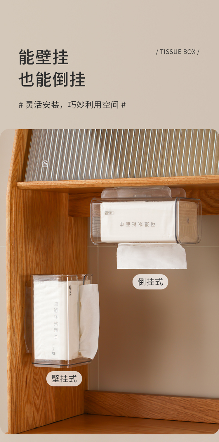 FaSoLa卫生间纸巾盒厨房壁挂式免打孔多功能洗脸巾收纳抽擦手纸盒