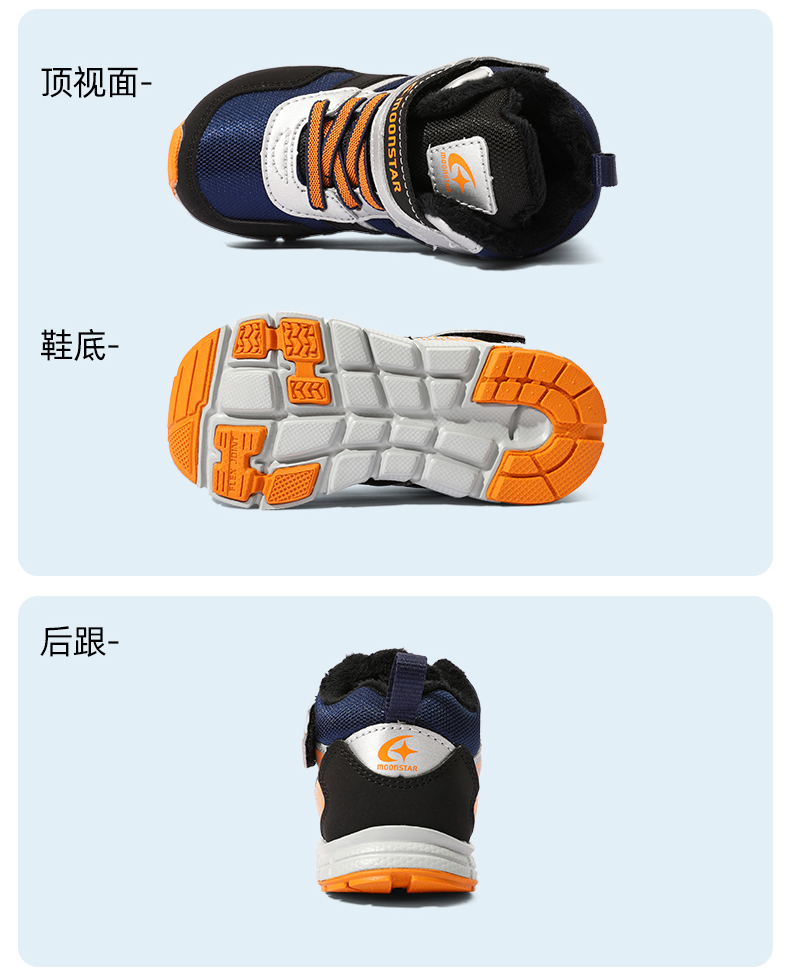 *MOONSTAR月星冬款保暖鞋3-12岁加绒加厚棉鞋男女童棉鞋