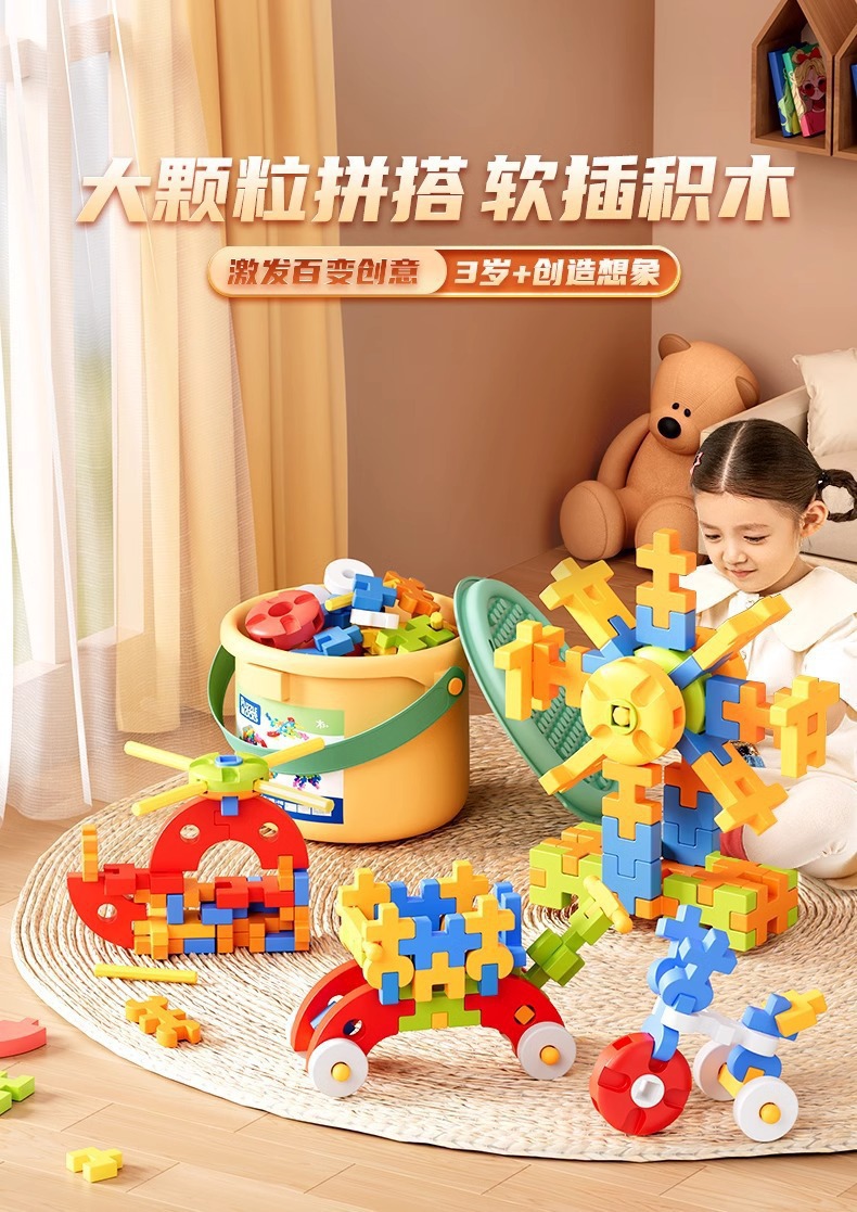 【大颗粒拼插 软插积木 质感超好!】儿童拼插装大颗粒软胶积木玩具 益智男孩女孩思维训练生日 玩具礼物