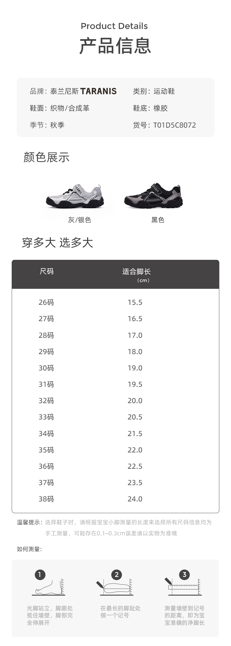 【新品】泰兰尼斯秋季中大童超轻户外慢跑鞋运动鞋T01D5C8072