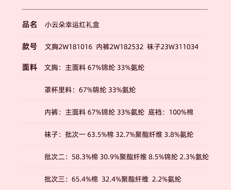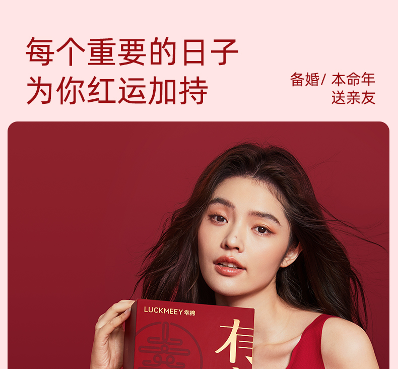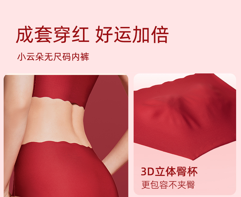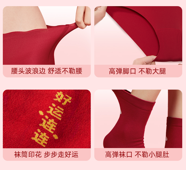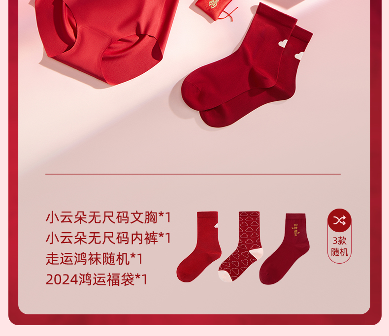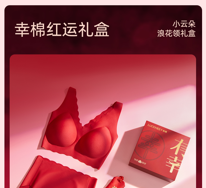 幸棉小云朵4件红色内衣套装礼盒【内衣内裤袜子福包】
