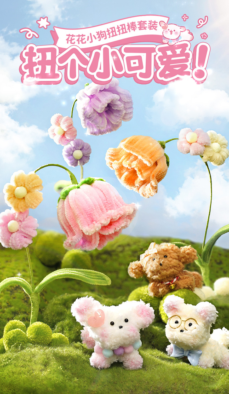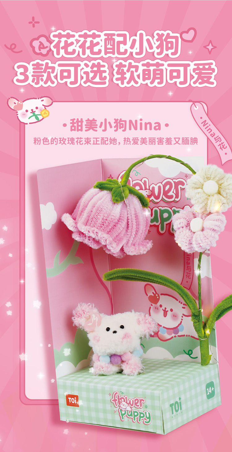 TOI图益扭扭棒花束手工diy花花小狗儿童制作材料包全套新年礼物女