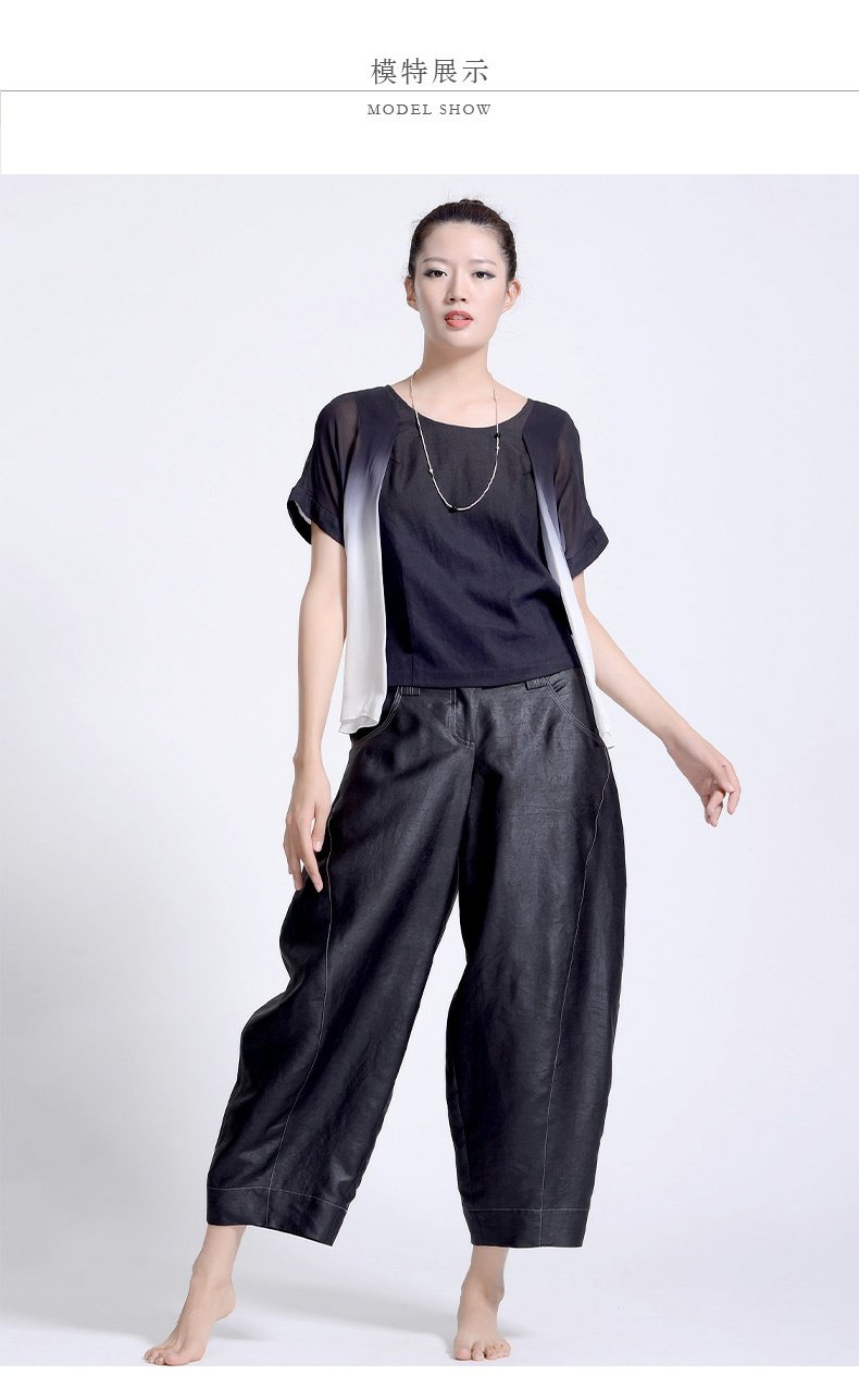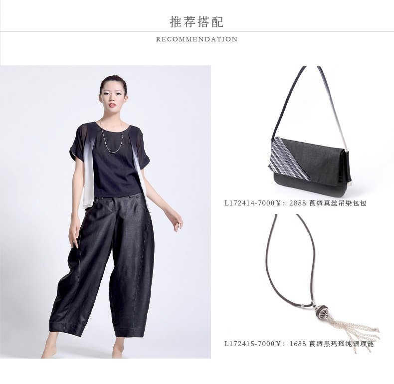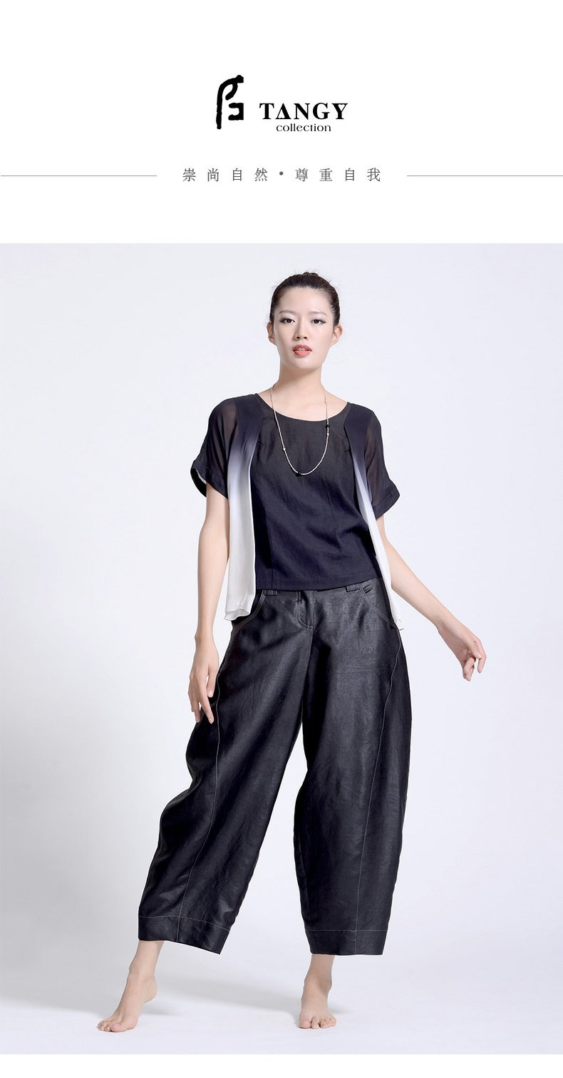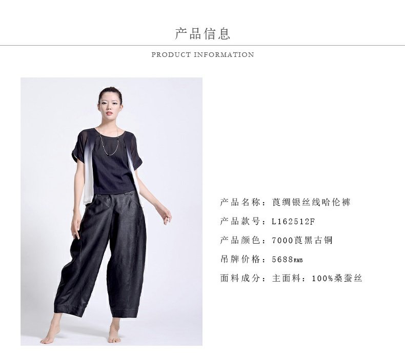 TANGY Collection/天意精品若谷 系列茛绸桑蚕丝复古女士休闲九分裤