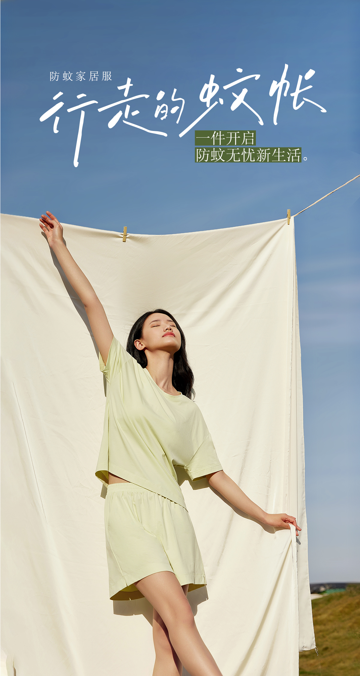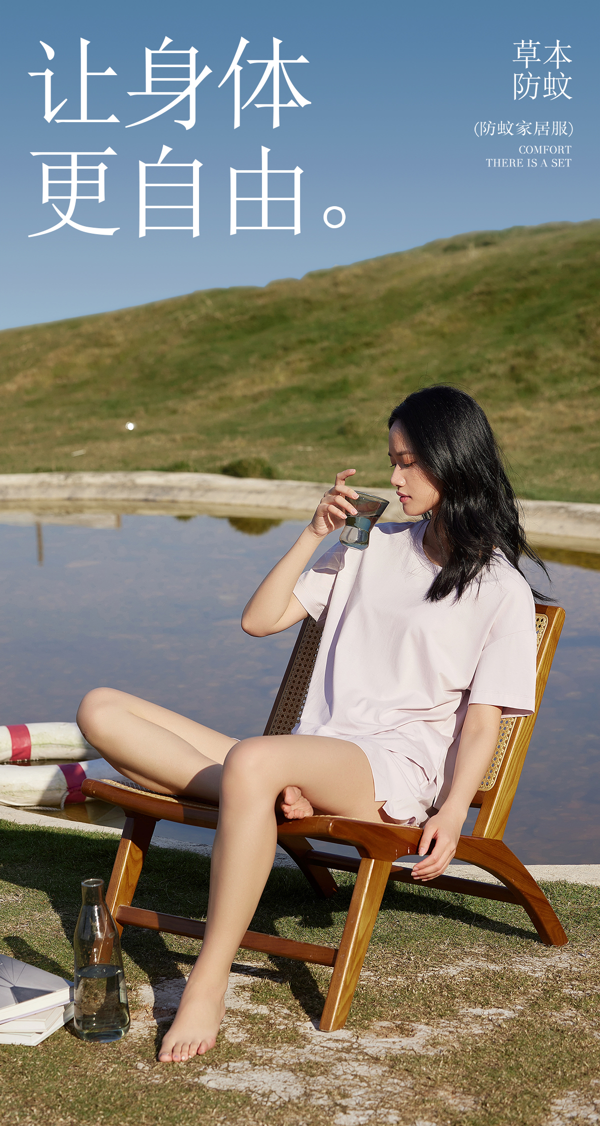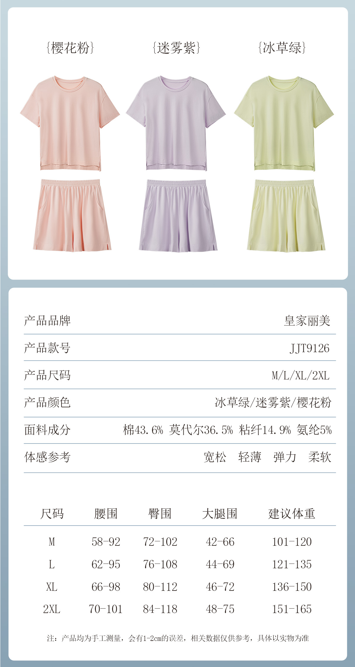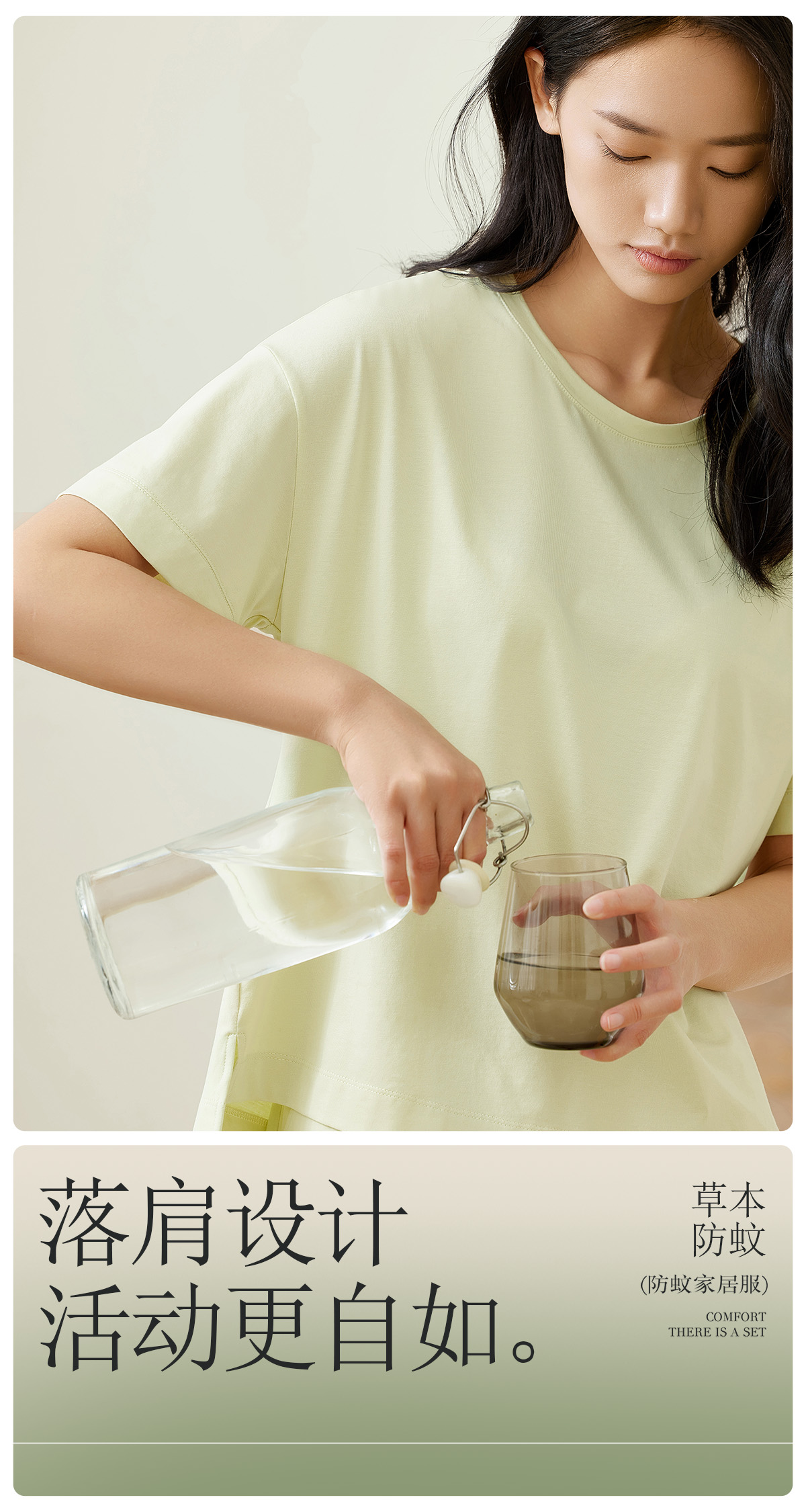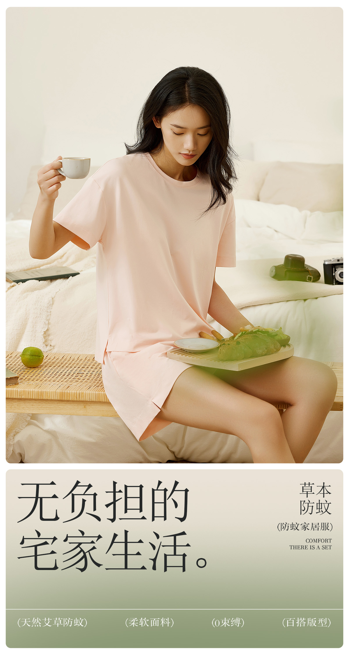 皇家丽美新款防蚊家居服睡衣女款春夏短袖短裤艾草防蚊可外穿家居服套装JJT9126