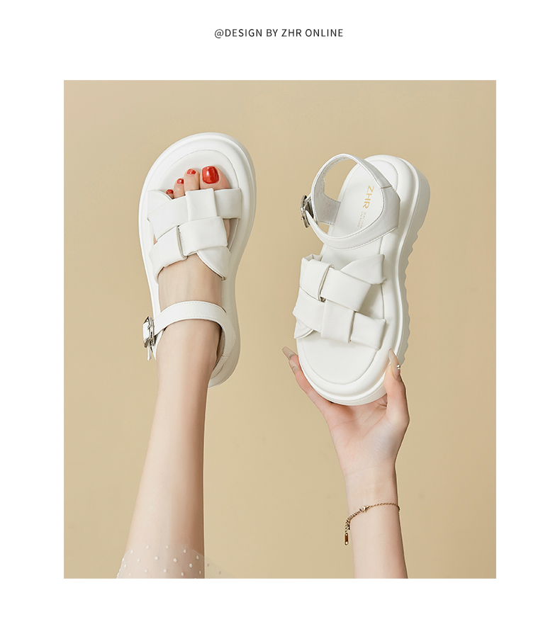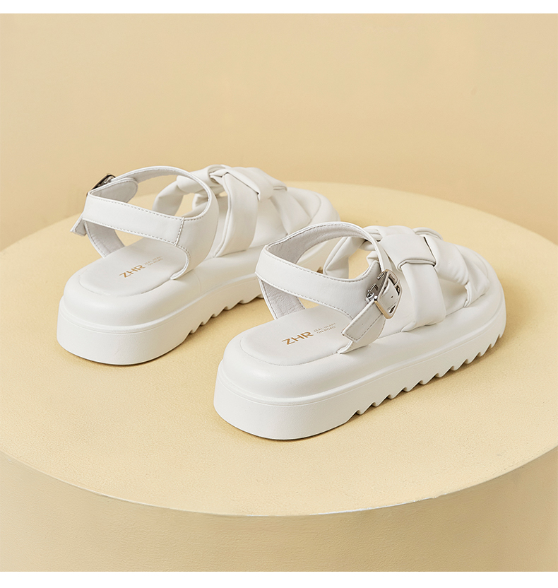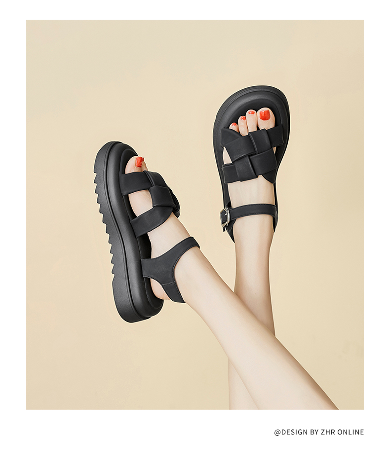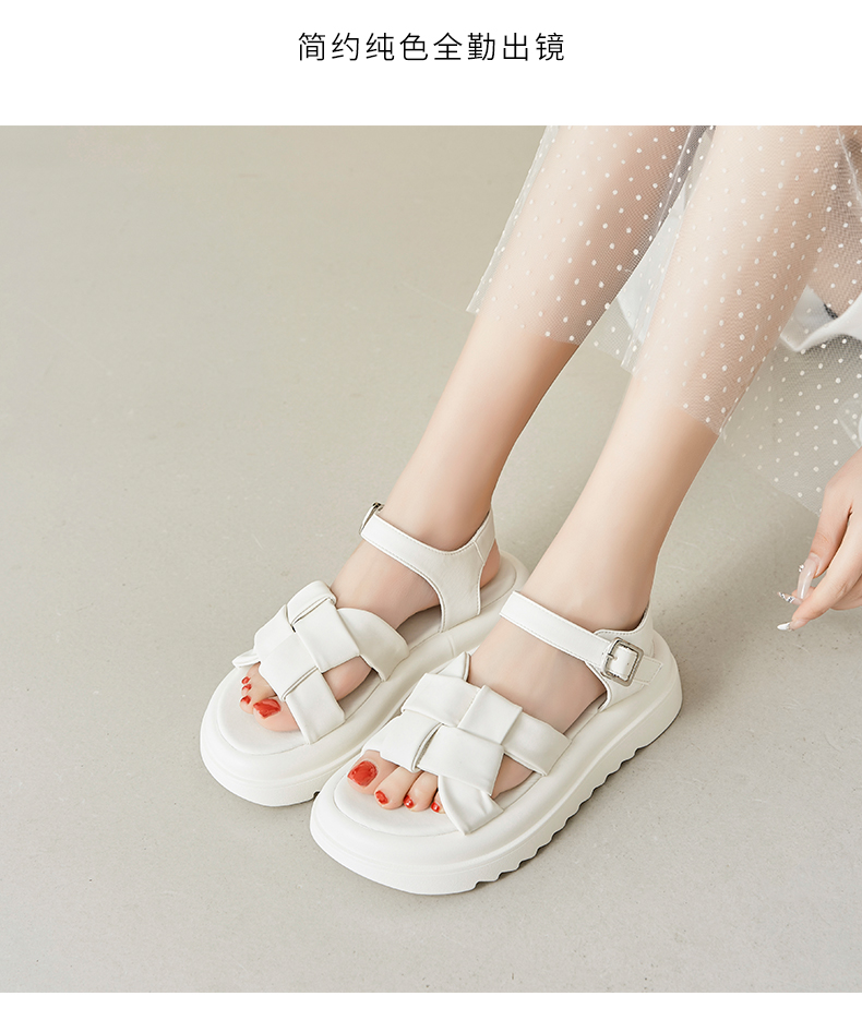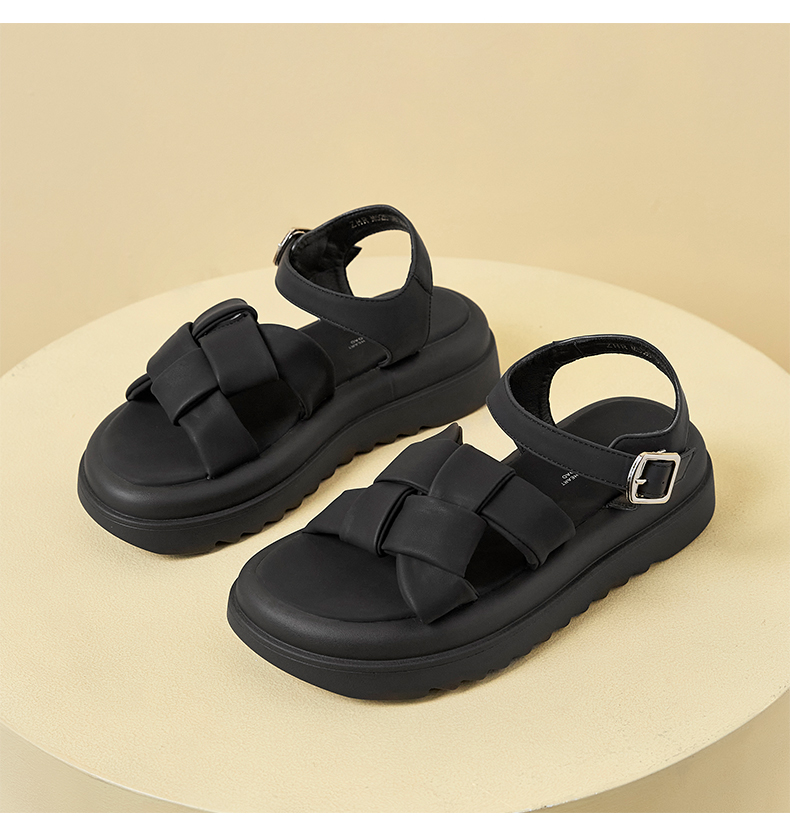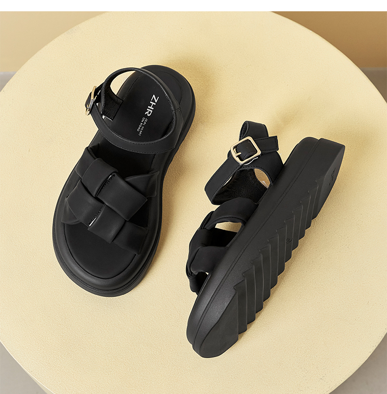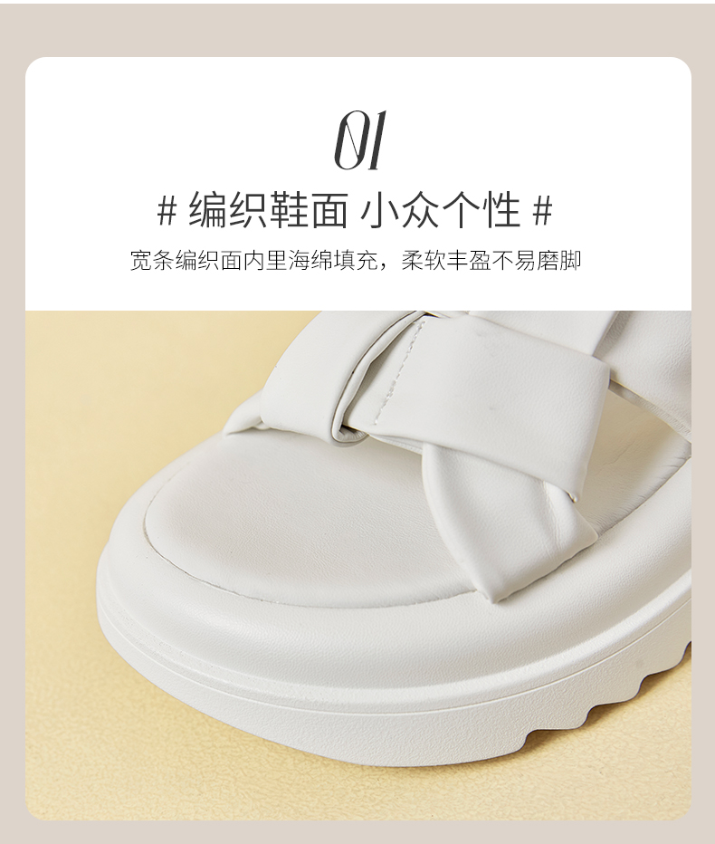 ZHR编织面凉鞋女2023新款显瘦松糕底沙滩凉鞋女小众设计外穿女鞋