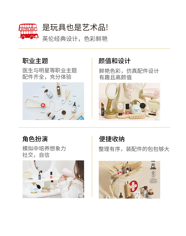 Le Toy Van 闪亮明星美妆包 木制玩具 适合年龄3岁+ 角色扮演 英国玩具 TV293