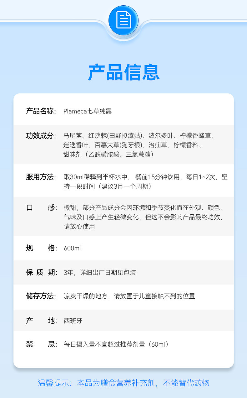 【结石福音】西班牙Plameca排石溶液 七草纯露柠檬香草液 600ml/盒 改善尿结石肾结石等泌尿问题改善