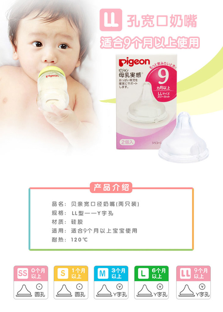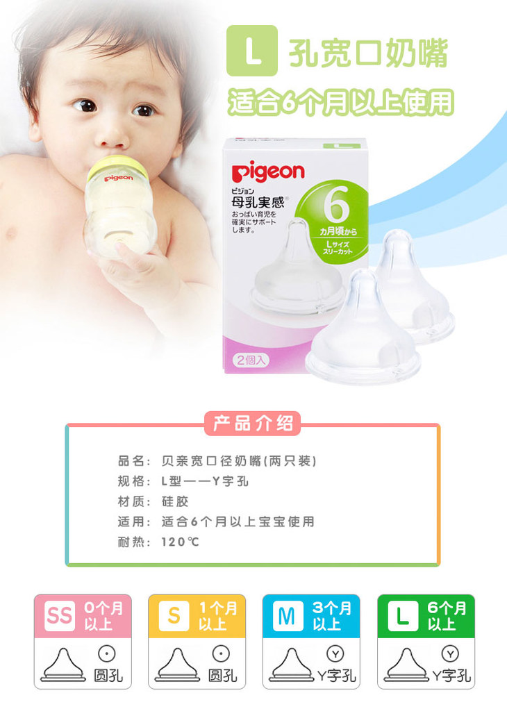 【一般贸易】【精品推荐】日本贝亲Pigeon 自然实感宽口径奶嘴(LL)2个装