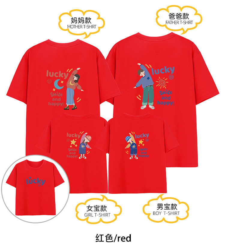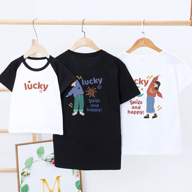 亲子装一家三四口夏装短袖2022新款潮亲子t恤母女全家网红新款国庆清明出游