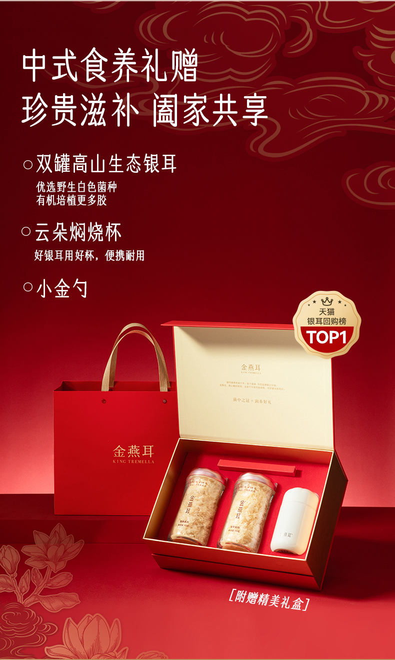 【双罐礼盒】金燕耳高山生态有机银耳 送礼礼盒 50g双罐礼盒装 20分钟冲泡即食