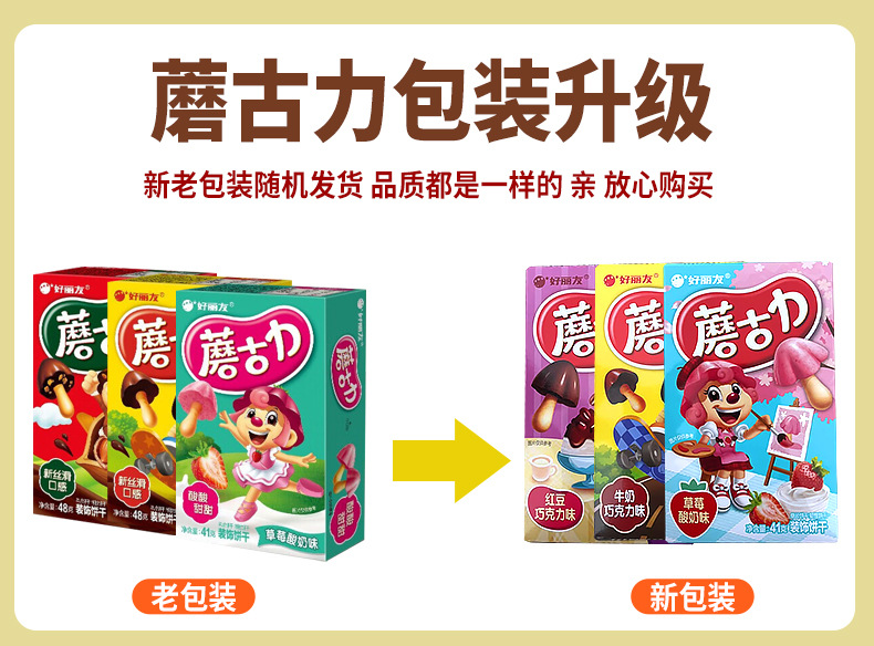 好丽友蘑古力饼干48g巧克力蘑菇头儿童饼干小零食休闲小吃食品