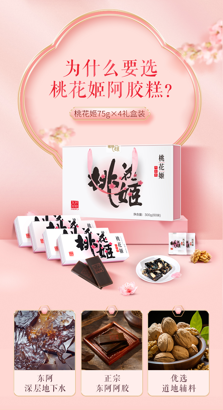 礼盒装】东阿阿胶 桃花姬阿胶糕75g*4盒