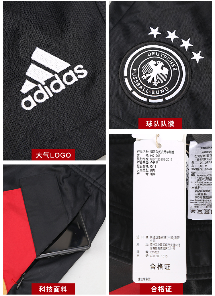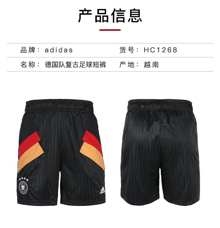 ADIDAS/阿迪达斯DFB ICON SHO德国队复古足球短裤HC1268