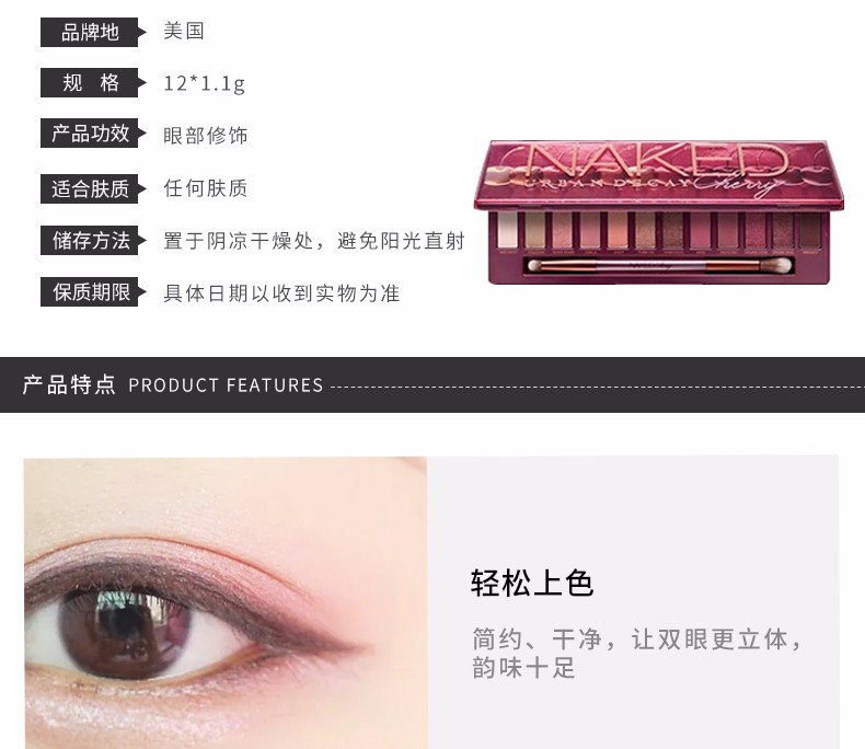 URBAN DECAY/衰败城市 12色眼影盘 樱桃盘 CHERRY 12*1.1G