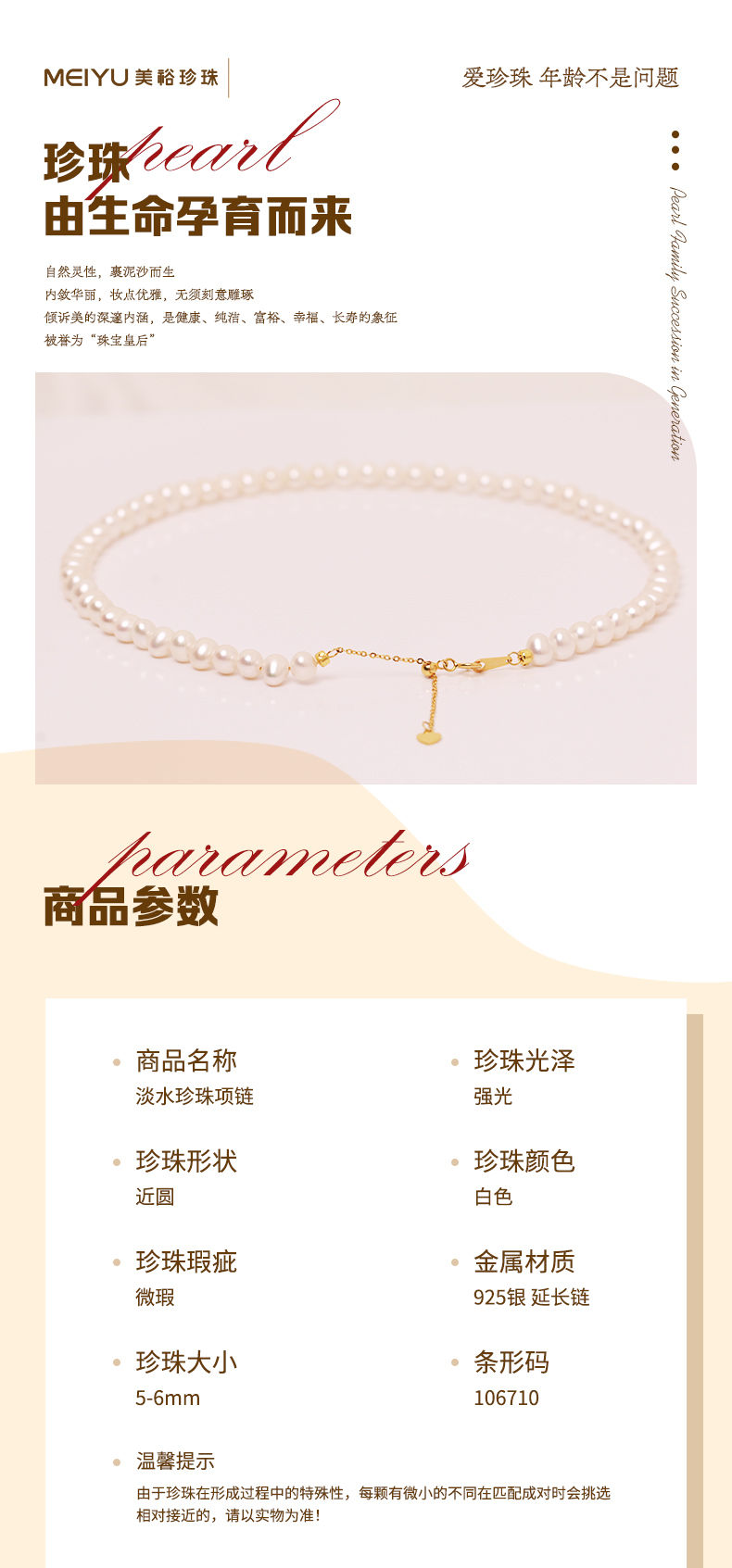 美裕 925银淡水珍珠链牌10-11mm白 107241