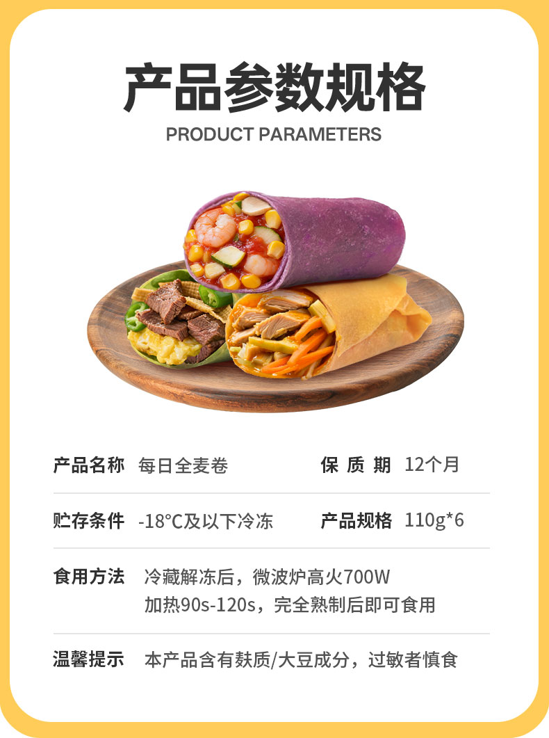 每日全麦卷高蛋白早餐鸡肉卷牛肉卷加热即食营养餐主食非油炸轻食
