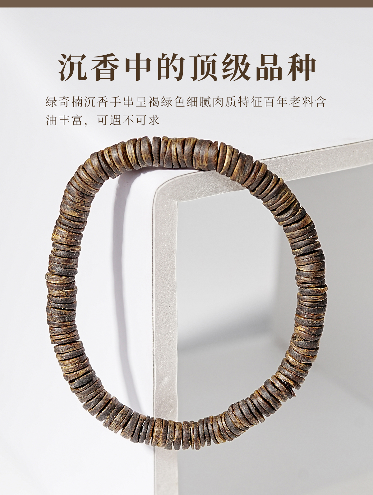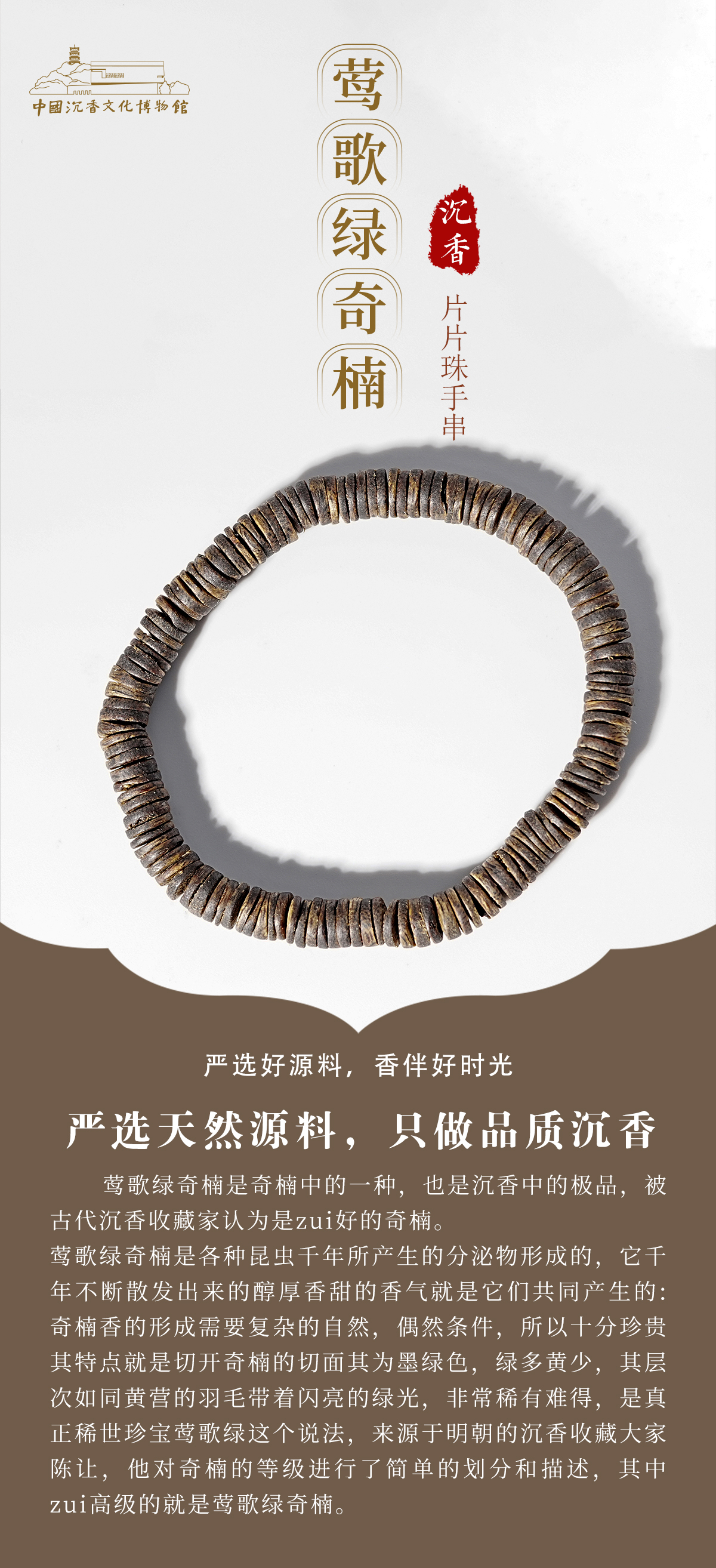 中国沉香文化博物馆绿奇楠沉香片片珠手串 沉水级别