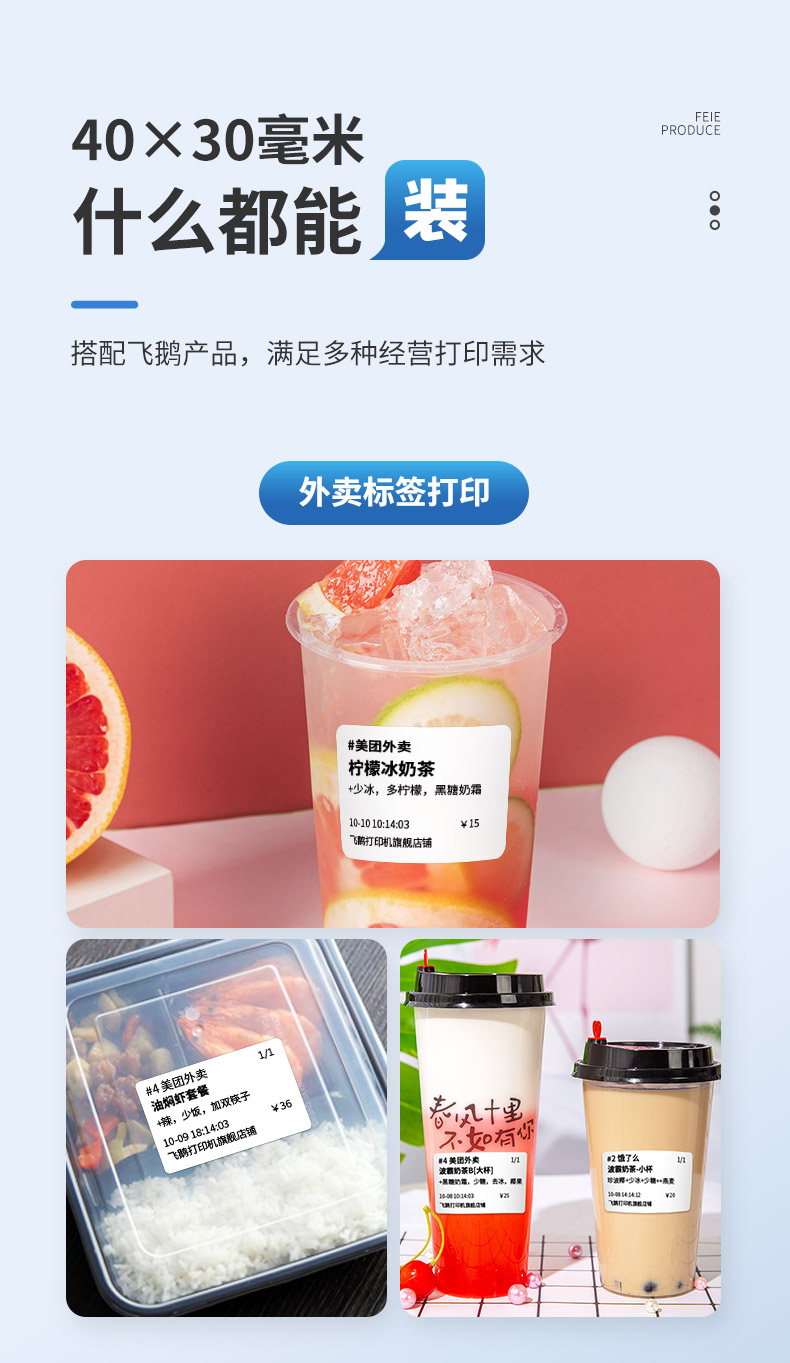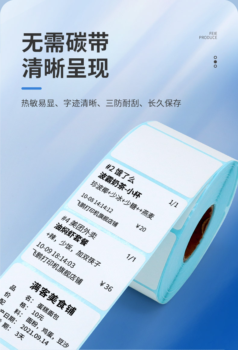 飞鹅三防热敏标签纸40*30MM标签纸