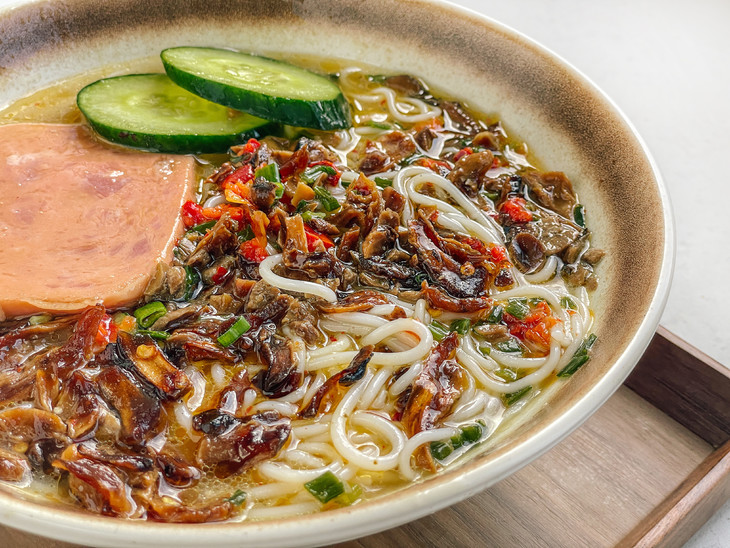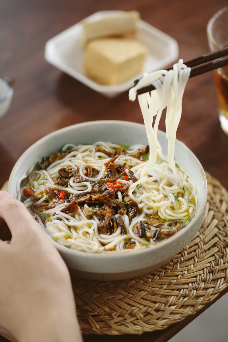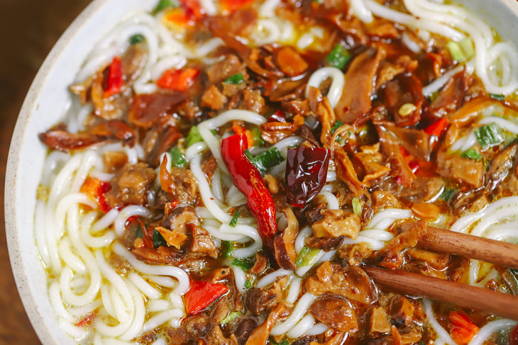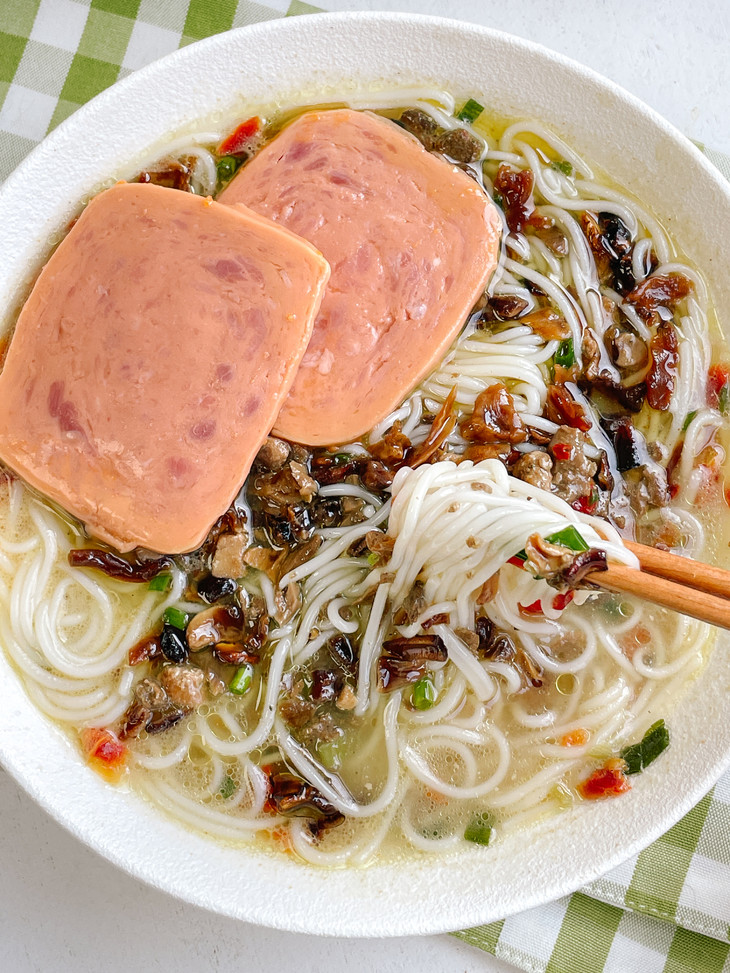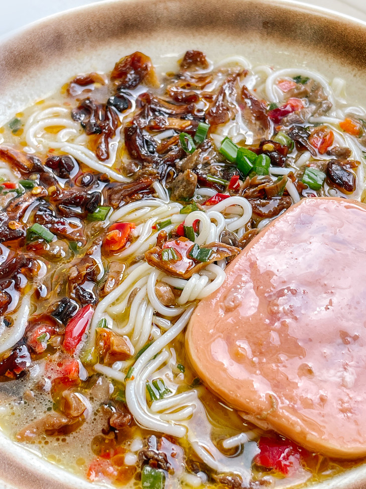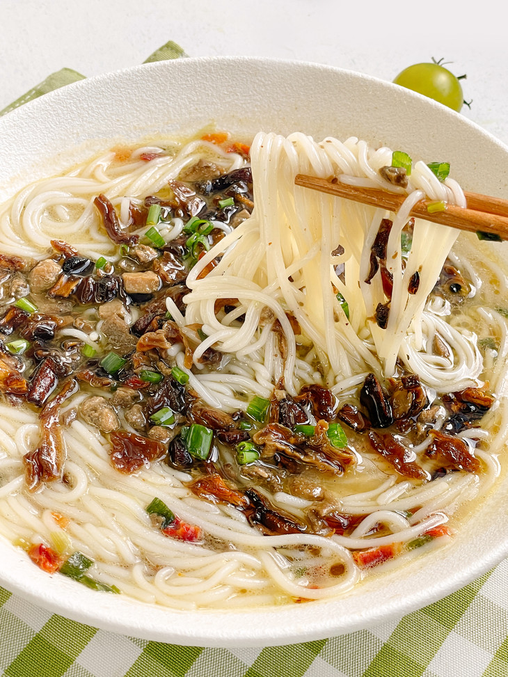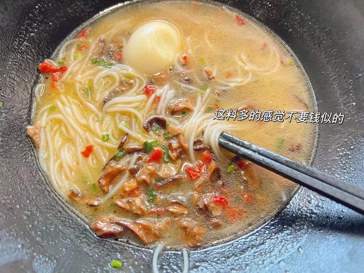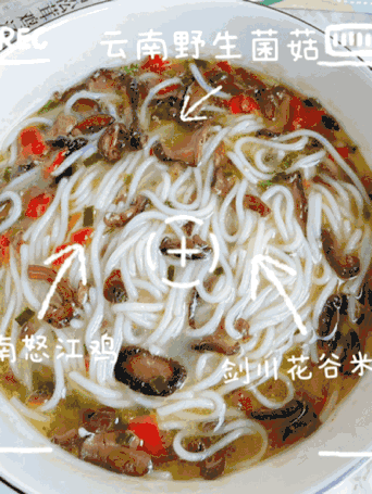 👉满满一包菌菇、一包肉酱、一包蔬菜,滑溜糯糯的米线