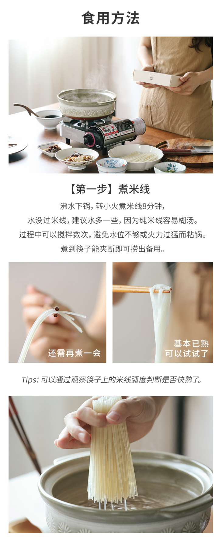 ✅久煮不糊汤、不断条、吐浆率低,烹饪后的米线口感劲道Q弹、柔韧爽滑~