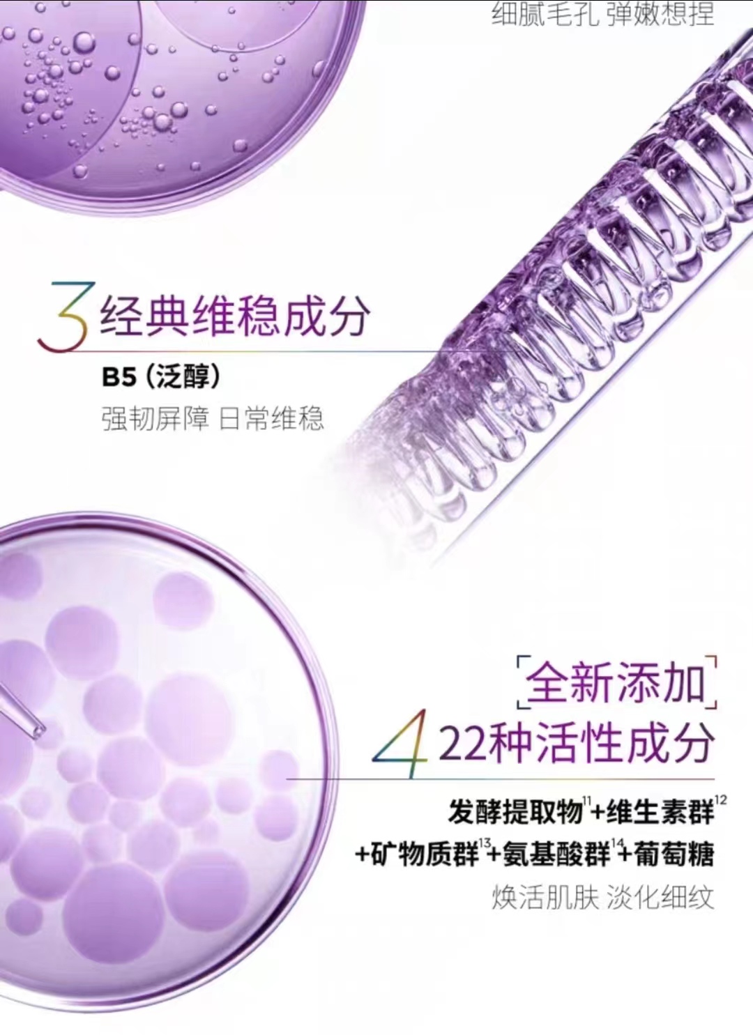 采用了双发酵精粹配方,98%高纯度二裂酵母+全新S.F.E发酵精粹,激活细胞活力+修复老化系统,从五个维度实现抗老(饱满、紧致、光滑、弹润、透亮)!