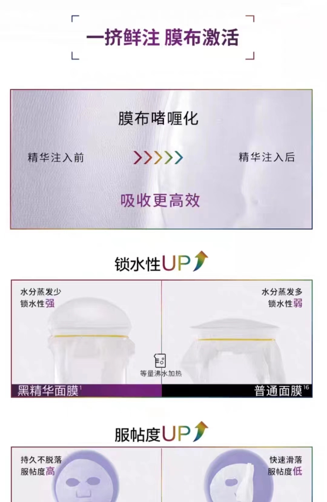 卖点:欧莱雅黑精华面膜,里面添加了满满一瓶黑精华酵素精华,小黑瓶大家都用过吧,这个面膜里可是添加了一整瓶!