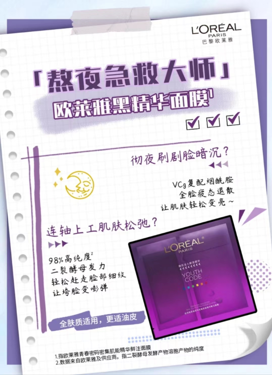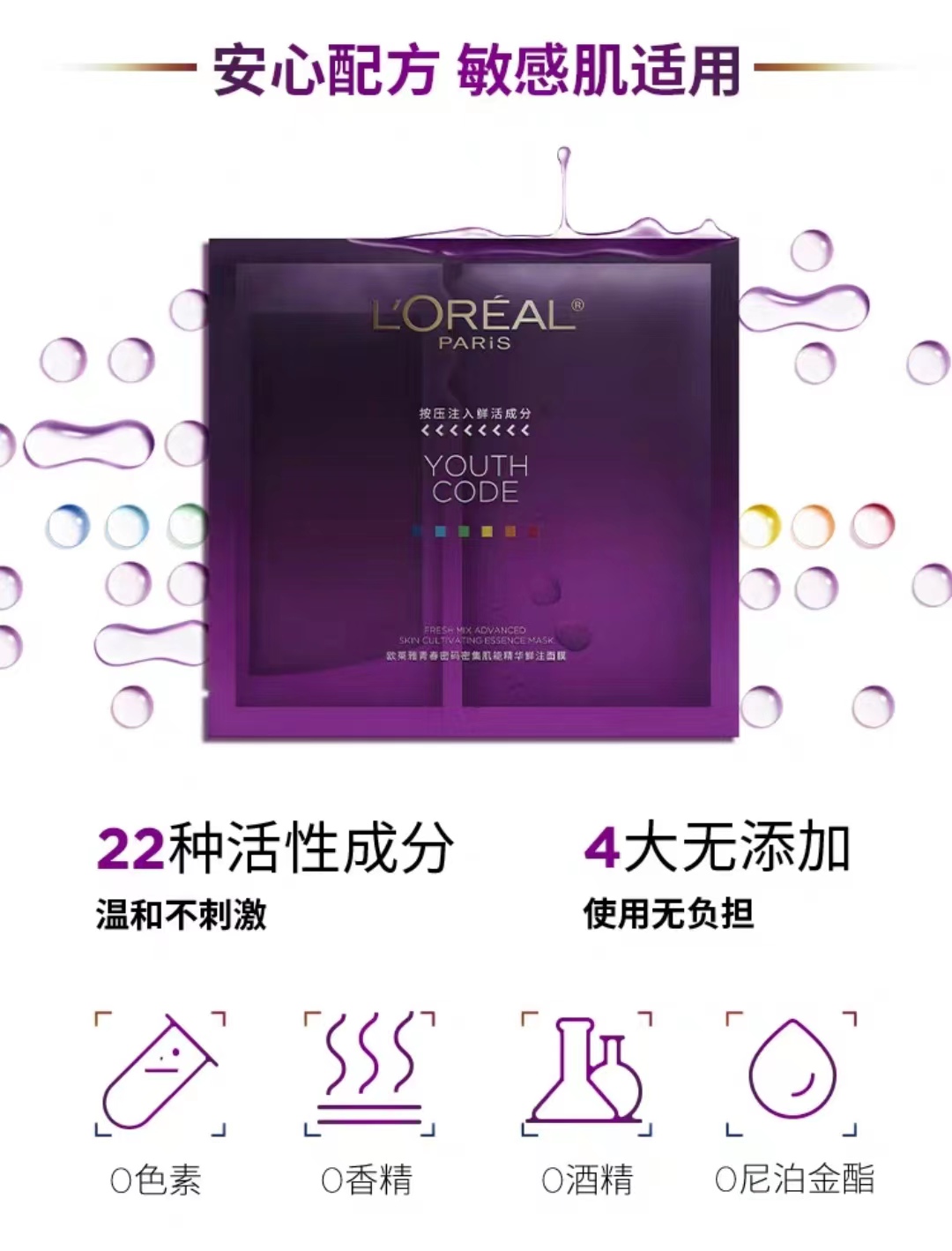 【品名】欧莱雅青春密码酵素精华鲜注面膜新版