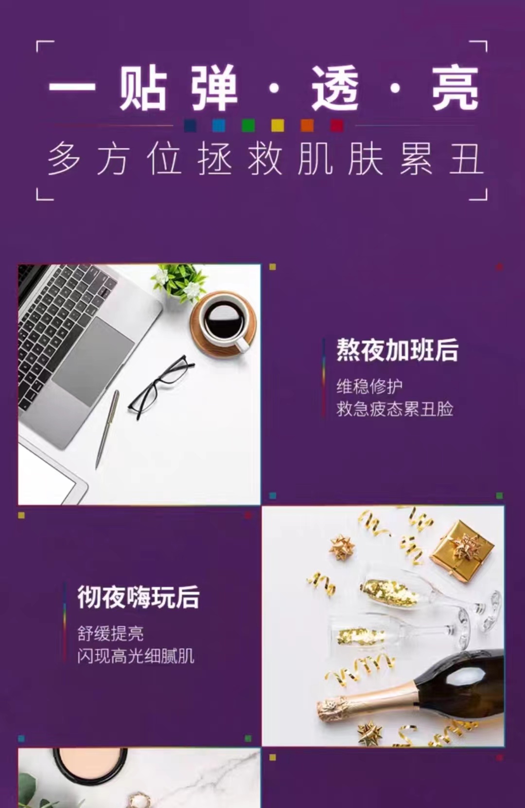 即时效果超明显,敷15分钟,感觉皮肤是透亮的,又嫩又滑,经常熬夜的姐妹有救了,敷完之后,脸上的疲惫感都没有了,脸上QQ 弹弹的。