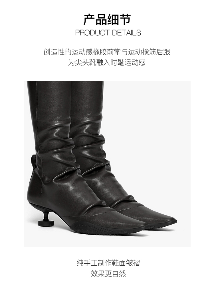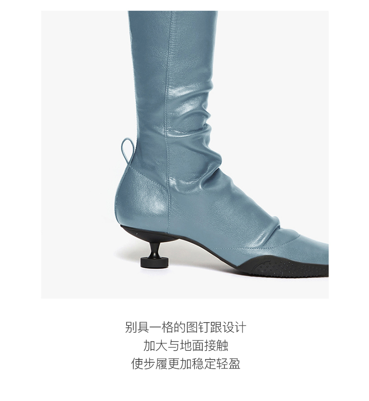 [福利价]lost in echo2024秋冬新款时尚牛皮方头扣饰直筒机车靴子长筒靴女