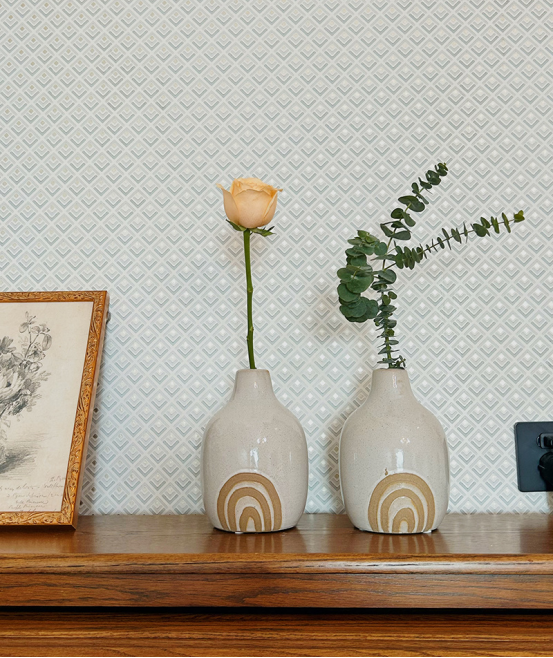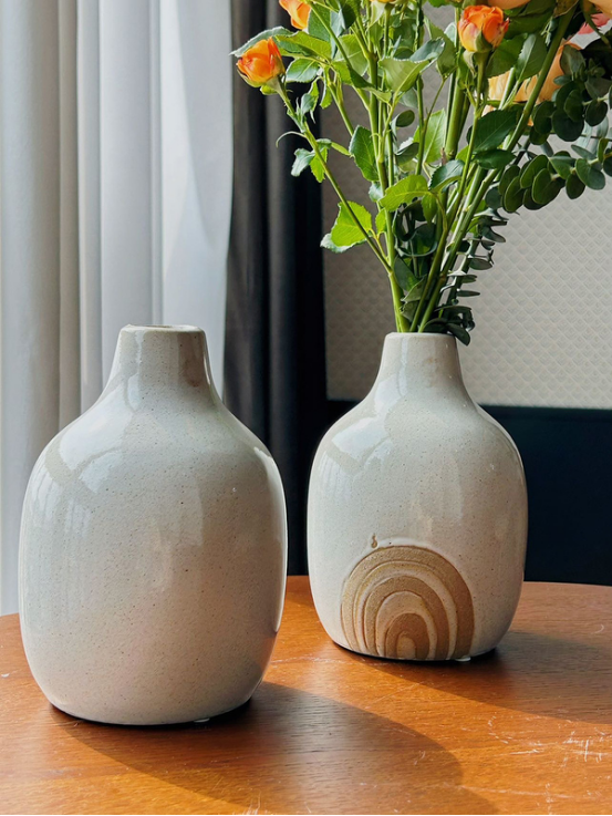 💖💖款式二【土陶波纹装饰美人肩瓶】 尺寸:13*13*18(cm) 波浪点缀装饰充满设计巧思 散发着油画般的静谧质感