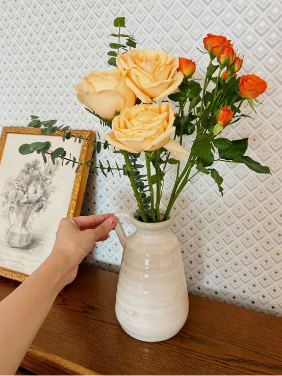 总是忙忙碌碌的你或许可以选择放下烦恼 泡上一杯茶,靠在柔软的沙发上 享受岁月的美好与宁静,看家中绽放的花朵 浪漫自有留处~ 🔺这个花瓶实在是太太太漂亮了! 素雅的颜色不抢花花的主角地位 却能起到极好的衬托作用 温温柔柔的,与花一起组成一副画 自由,自然,浪漫,休闲 美得清新脱俗、与众不同