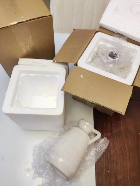 实拍产品包装: 气泡垫+泡沫箱+皮牛纸箱