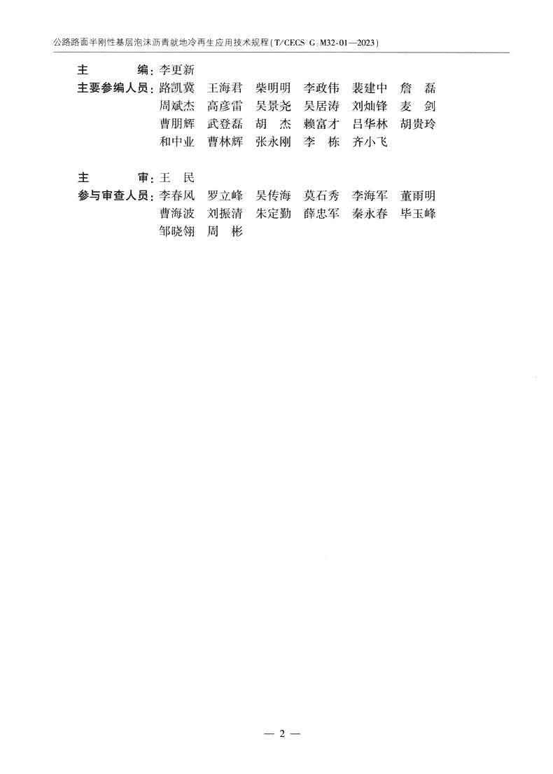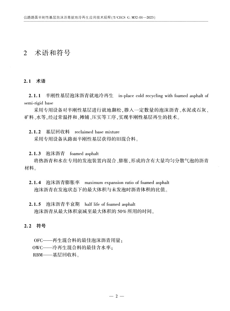 公路路面半刚性基层泡沫沥青就地冷再生应用技术规程(T/CECS G:M32-01—2023)